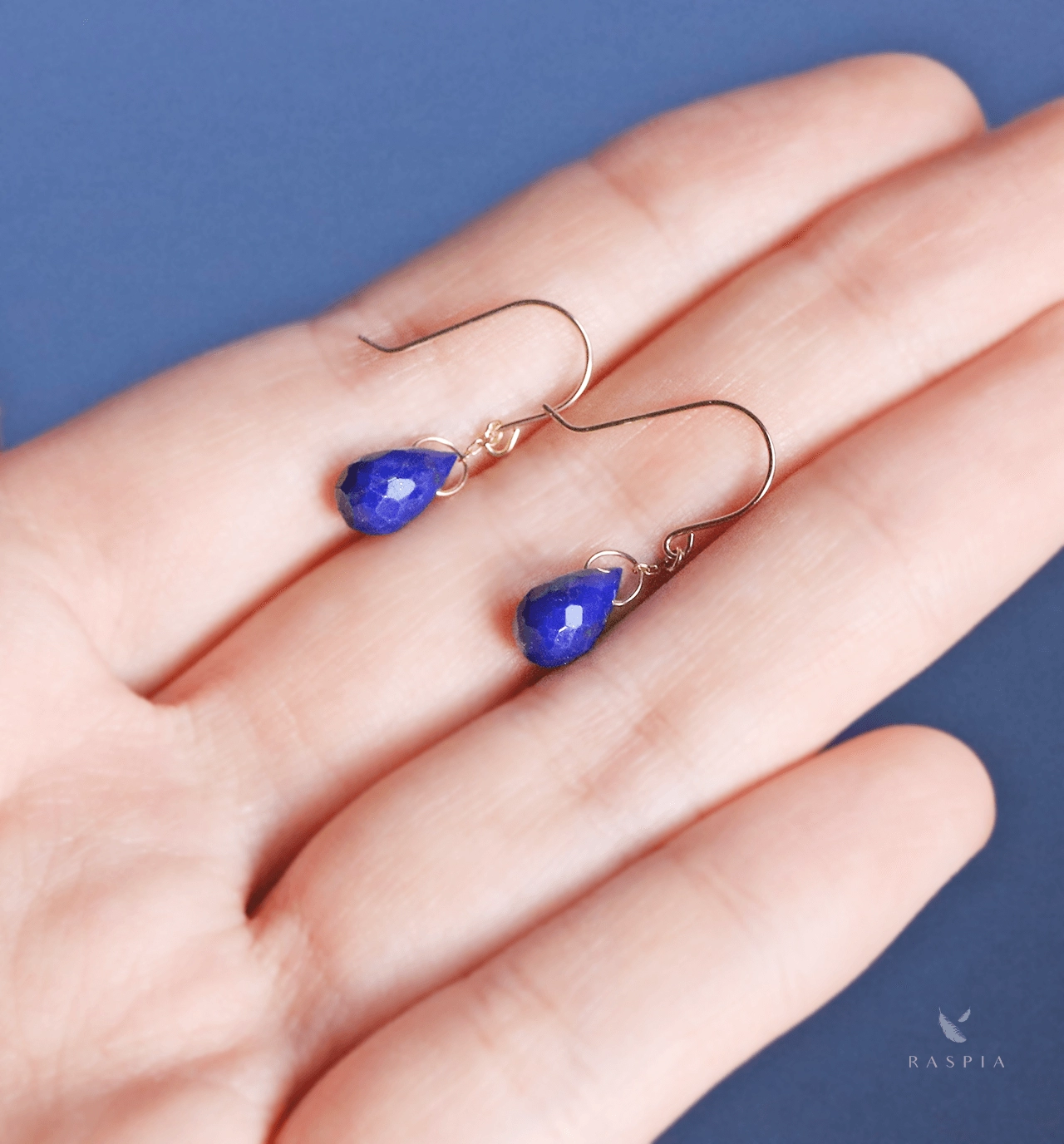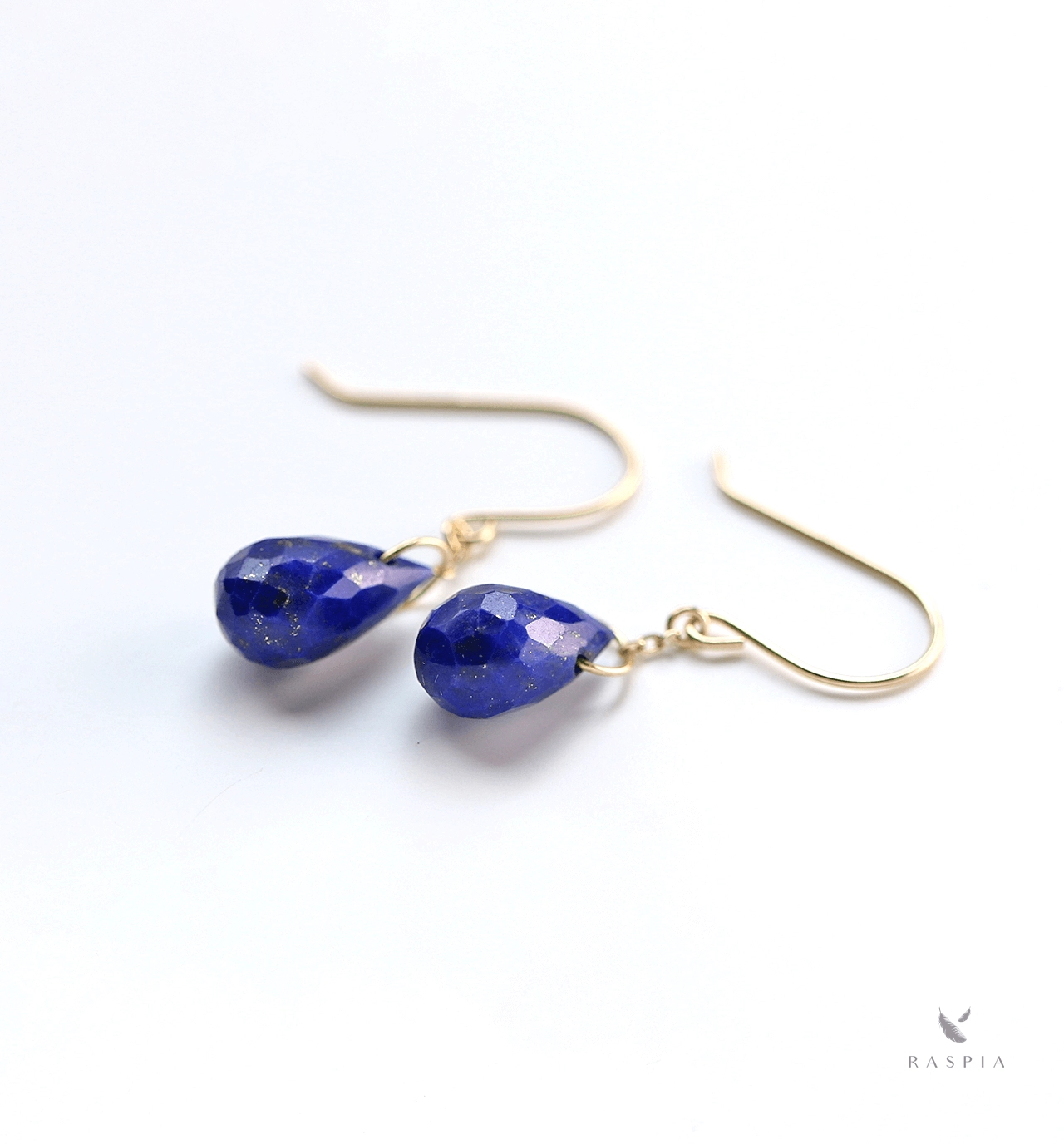 散りばめた星が夜の星空に広がるような綺麗なラピスラズリを使ったK10フックピアスです。
