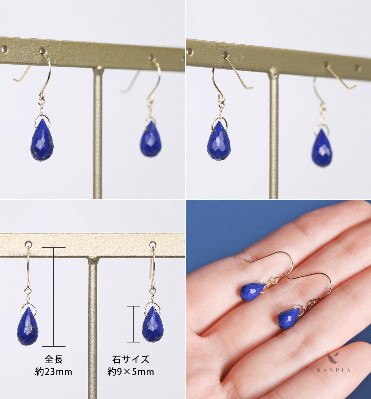 | 素材 | K10 / ラピスラズリ(ブリオレットカット) ※フックピアスパーツのみK18に変更可能です。(チャーム部分の金具はK10のままになります。) | カテゴリ | |