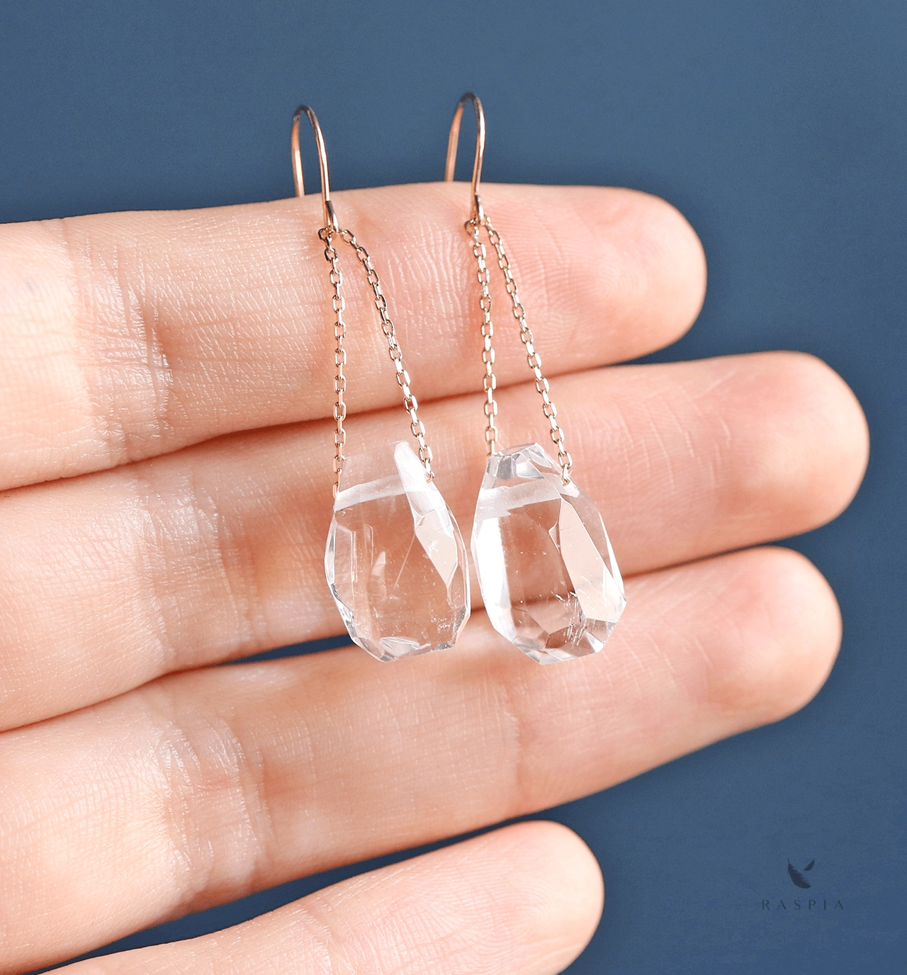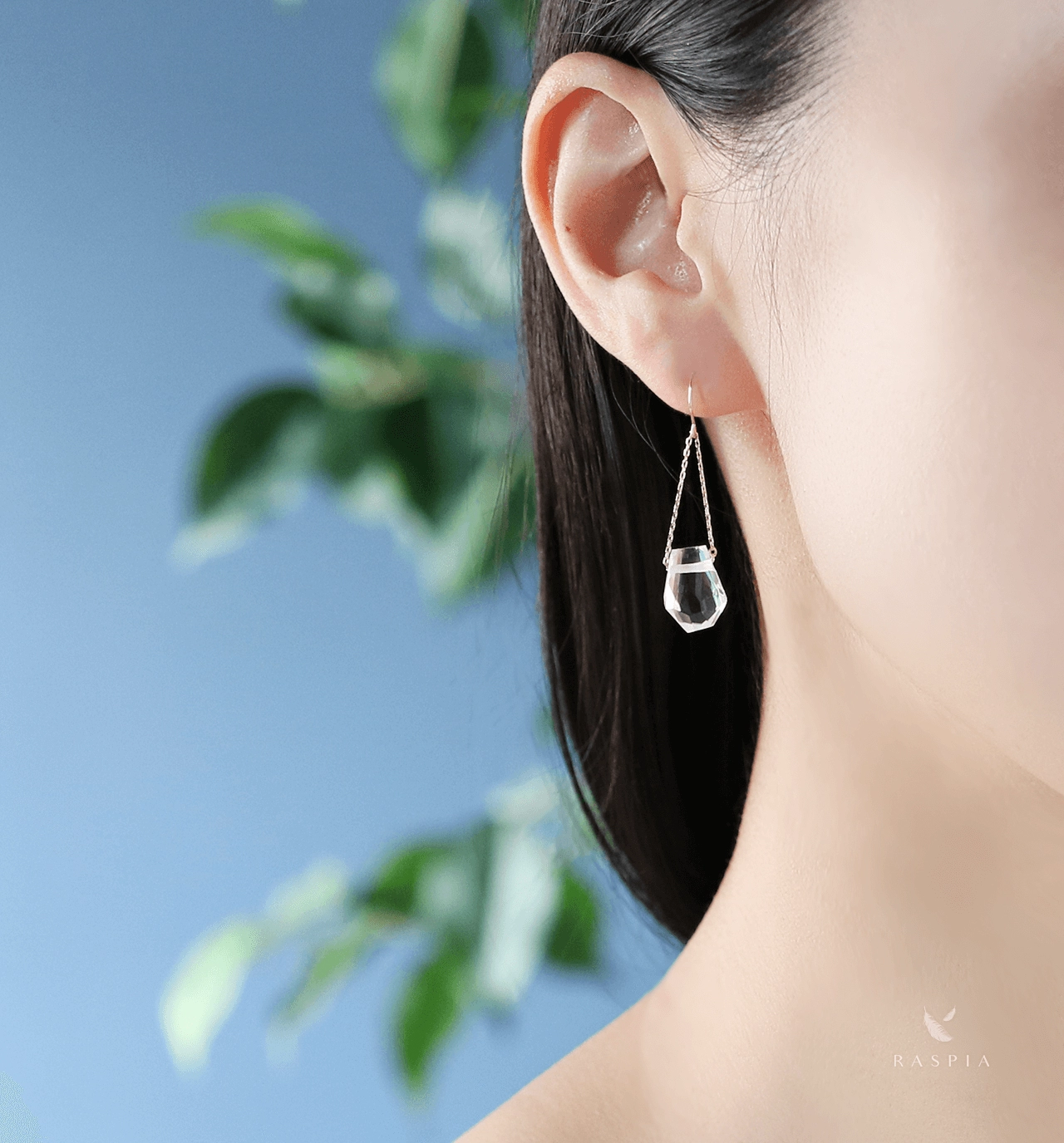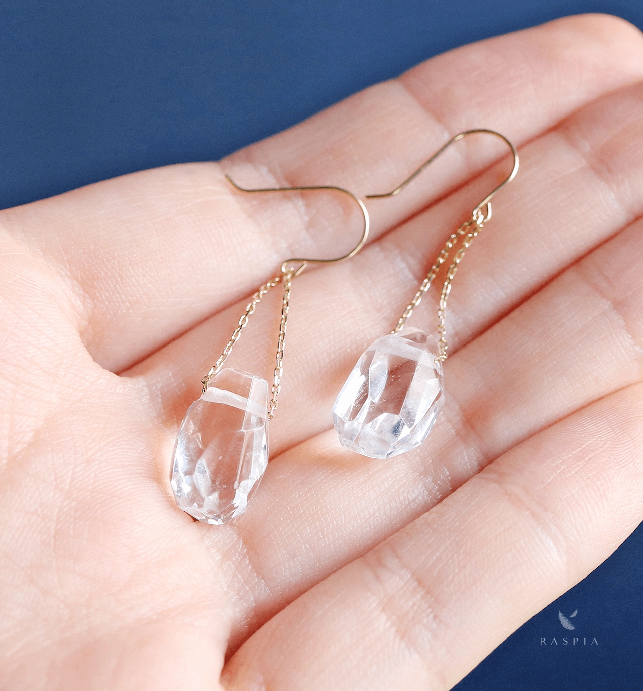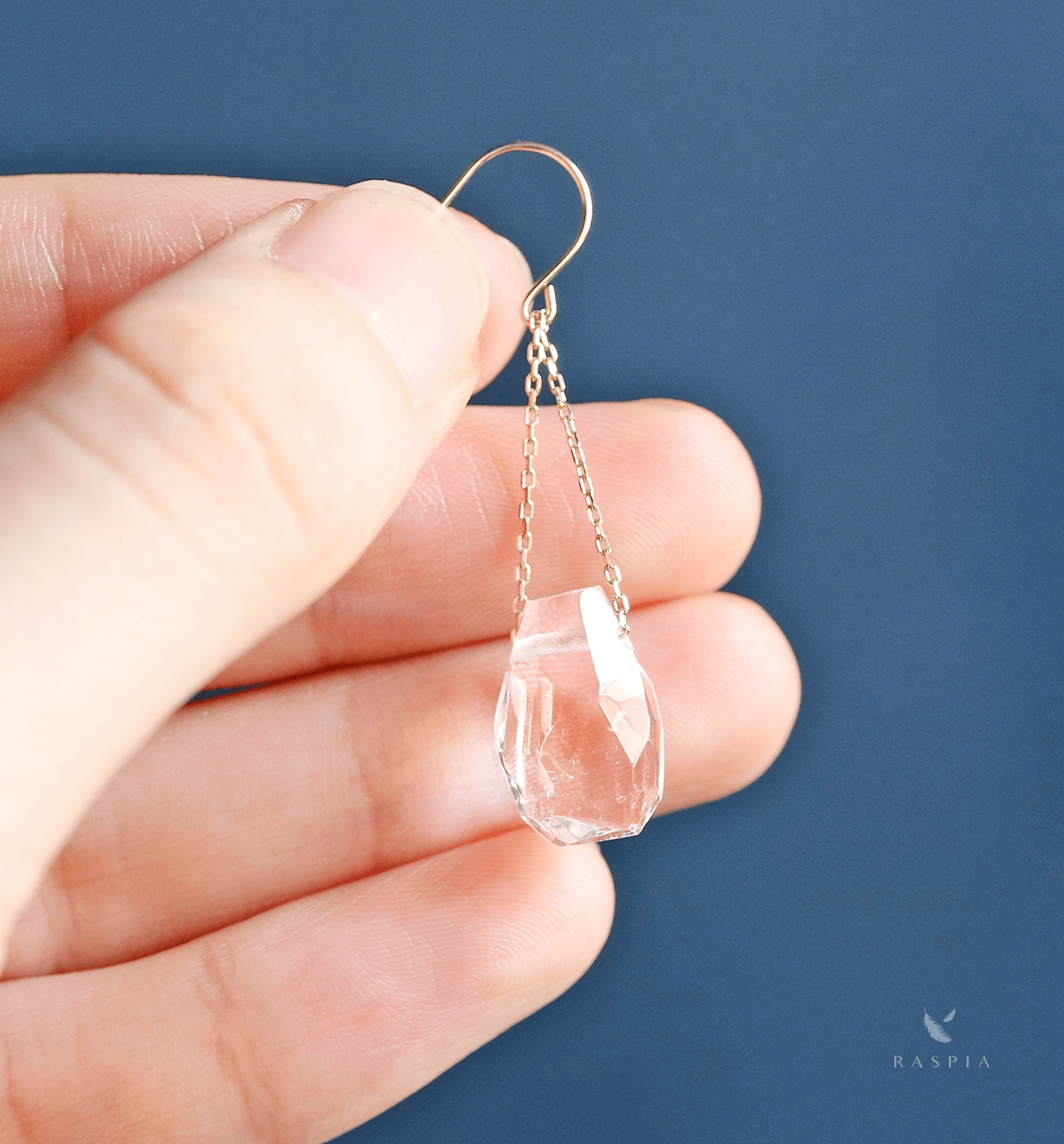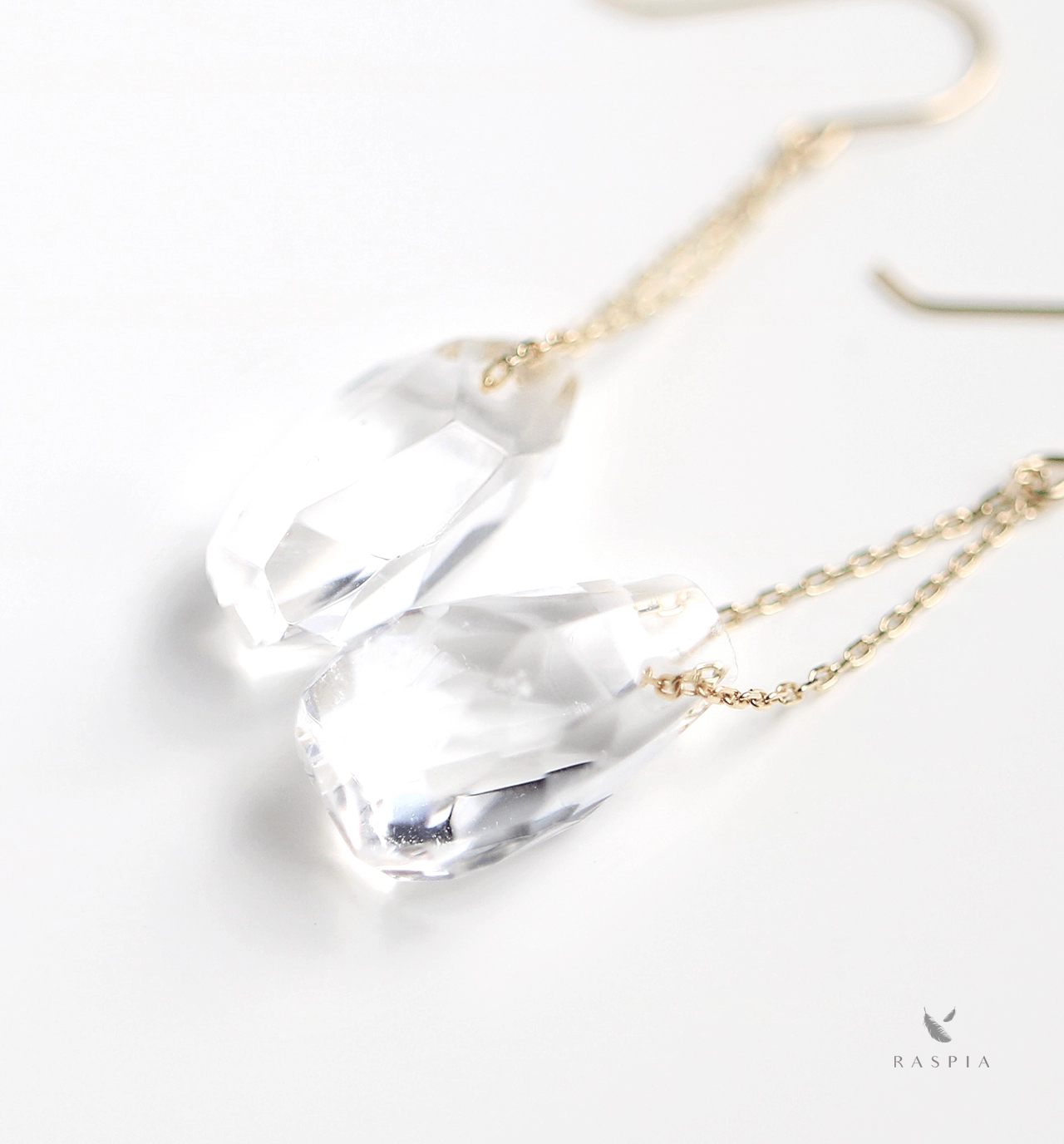 氷をそのままピアスに仕立てたような、涼しげな印象のロッククリスタルのK10フックピアスです。