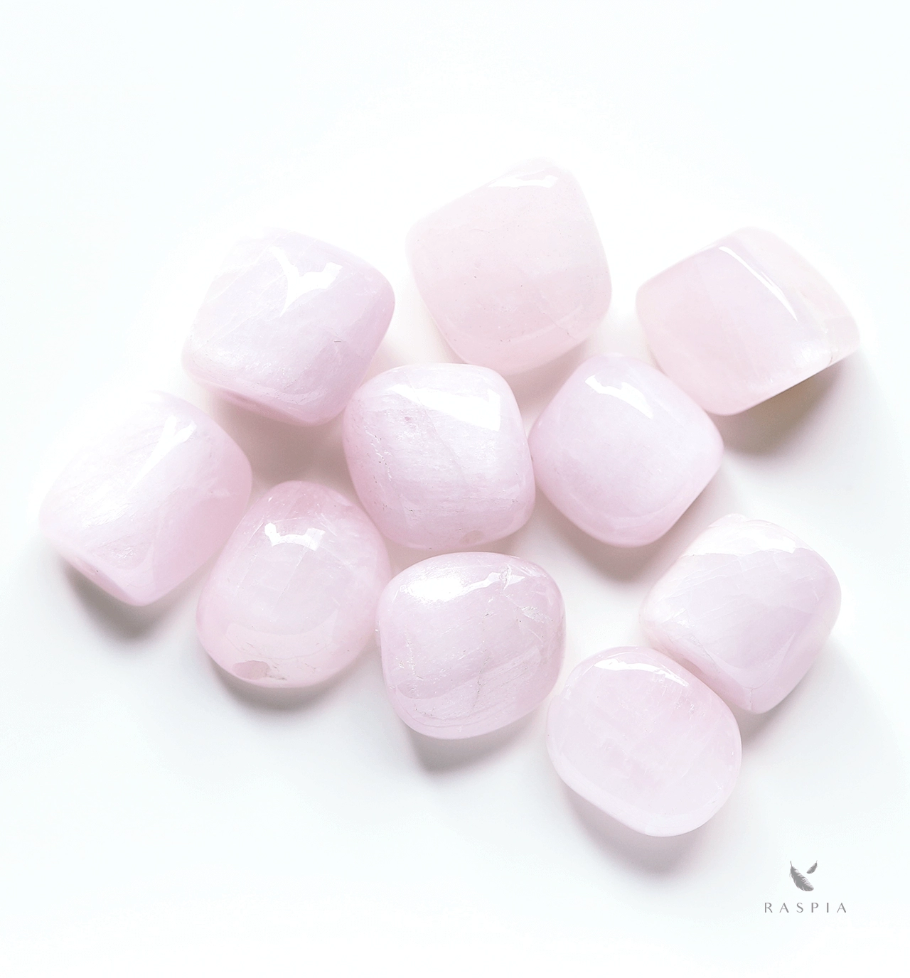 青みのあるピンク色にタンブルカット、内部のクラックも相まって、「可愛らしい」というよりは儚さ・芯の強さを感じられる石です。