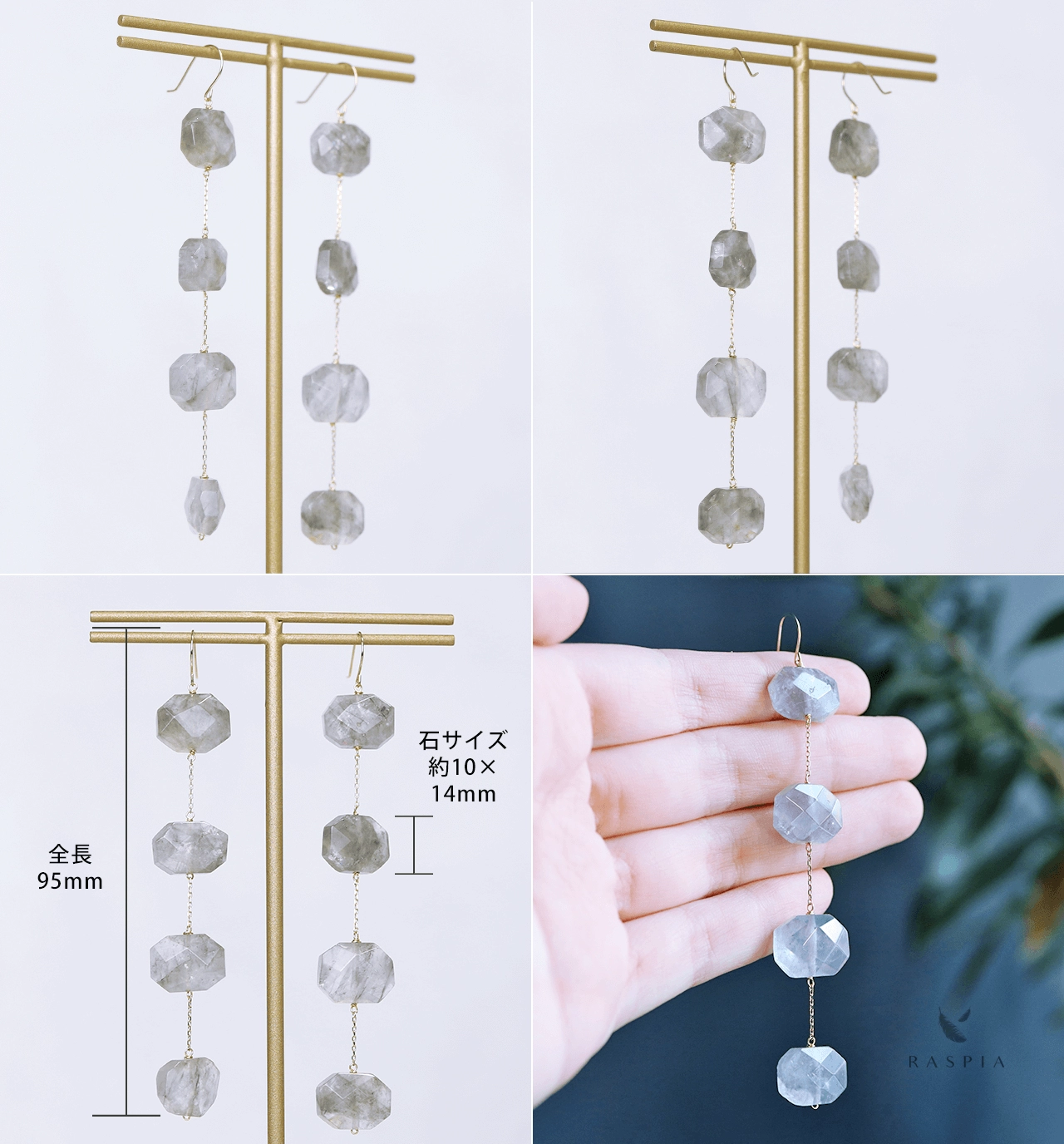 RASPIA(ラスピア)は、シンプルで大人可愛いデザインをイメージし、カラーストーン/天然石とK10(10金)/K18(18金)の本物のゴールド素材を使って手作りしています。