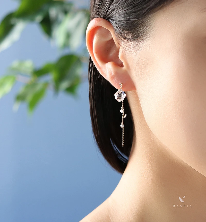 天然で出来上がる不思議なカットが神秘的なハーキマーダイヤモンドを使用したピアス。