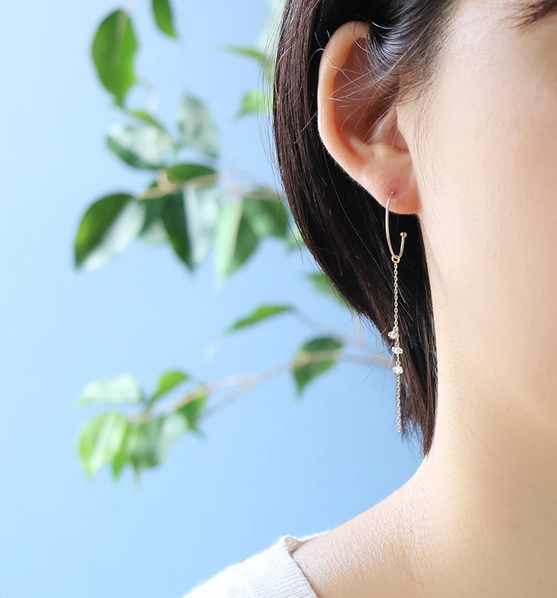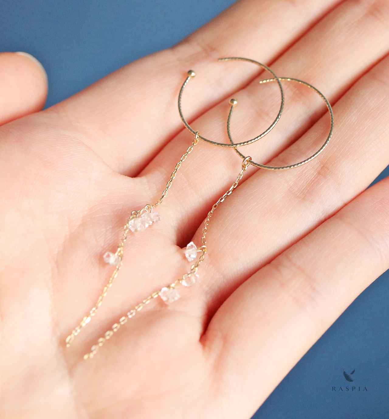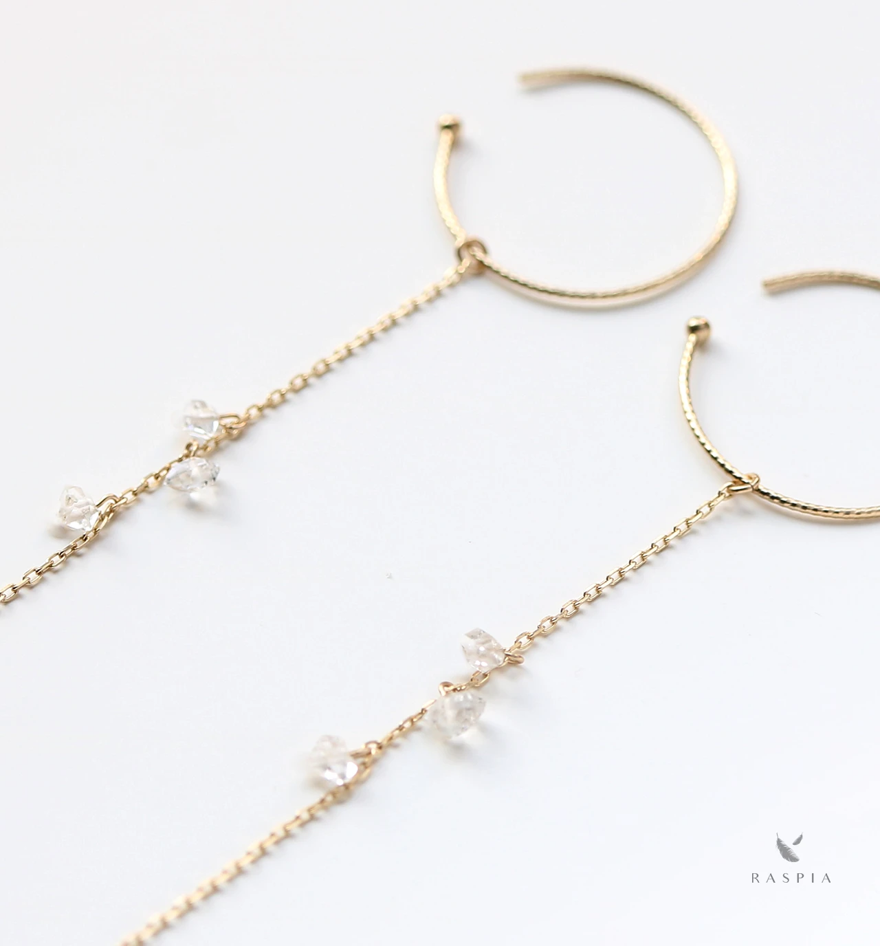 K10チェーンに透明のハーキマーダイヤモンドをあしらったピアス。