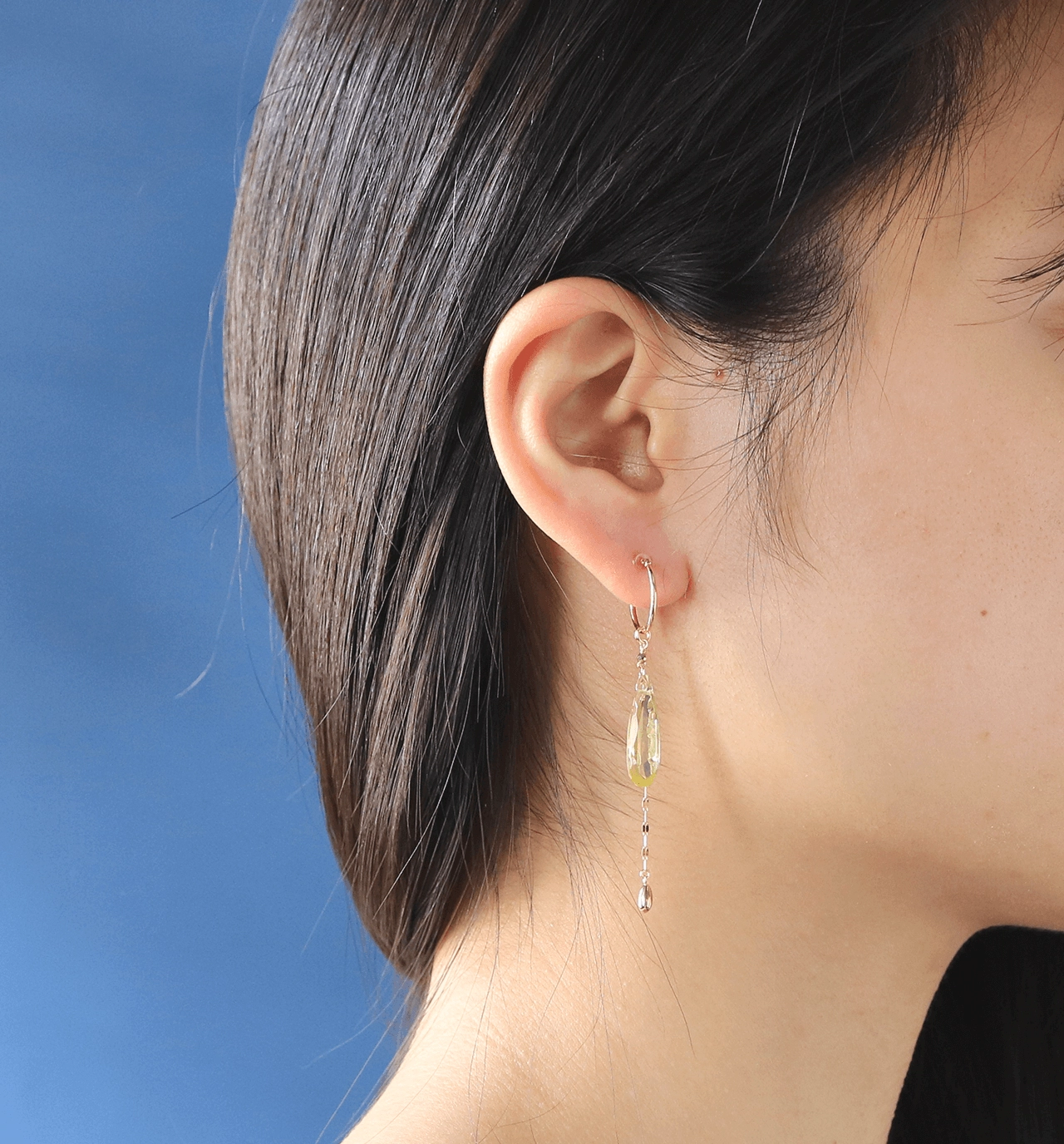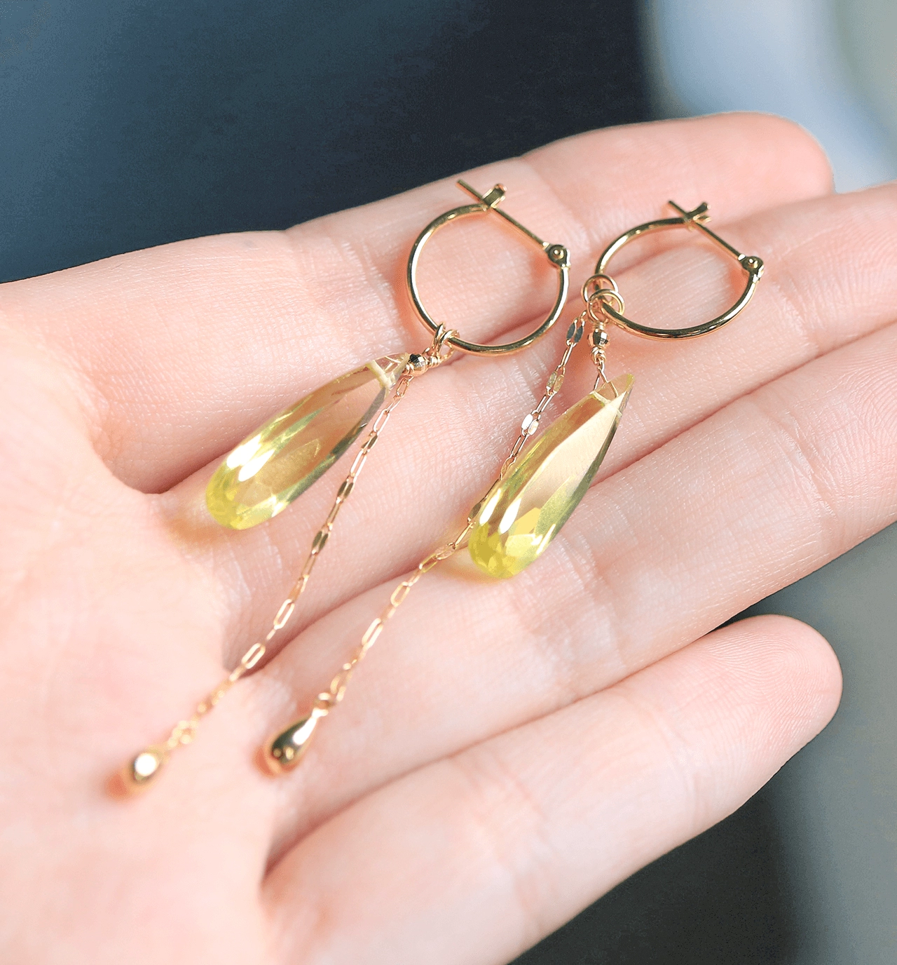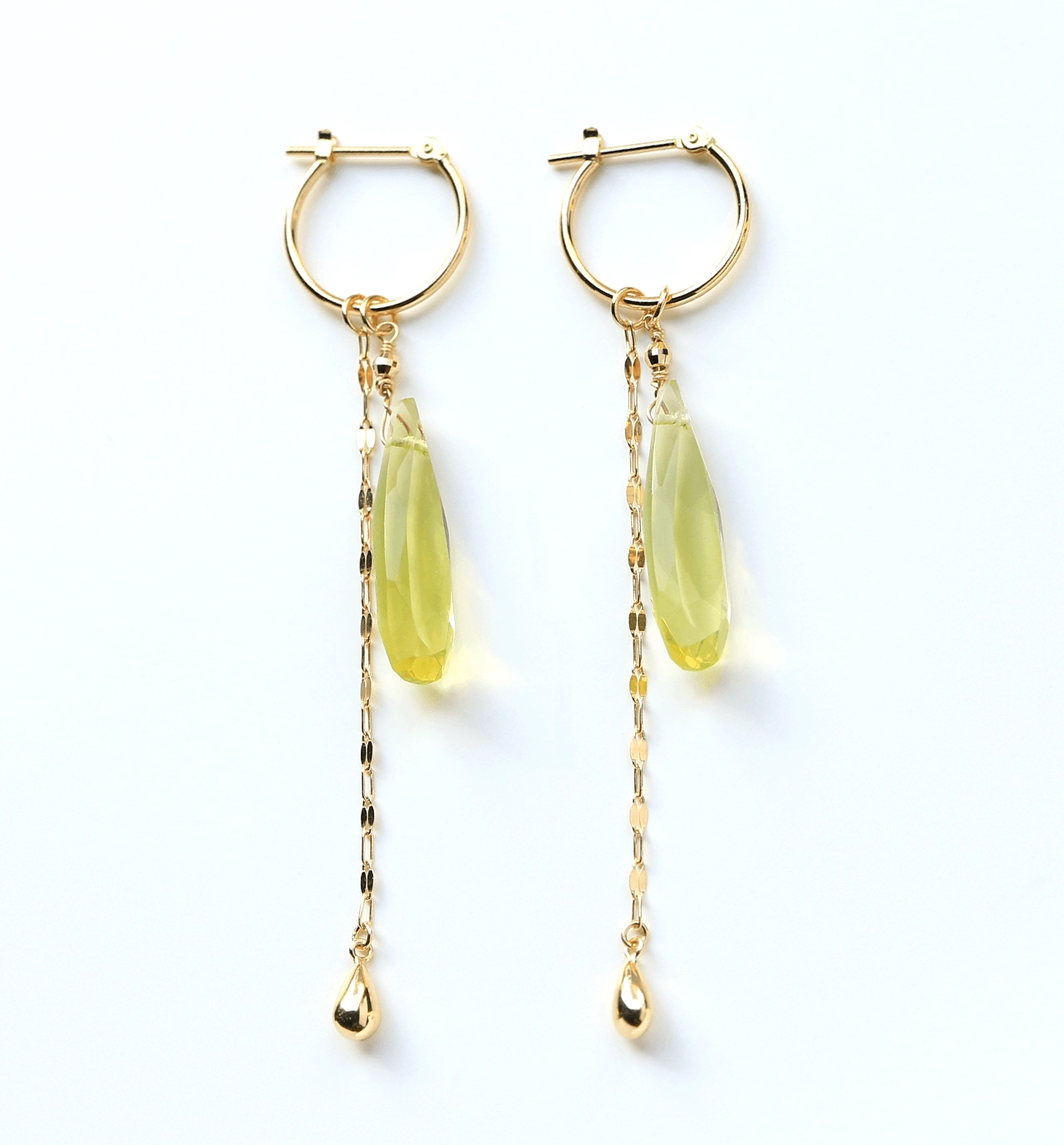 爽やかな色味のレモンクォーツを使ったK18のクロッシングピアスです。