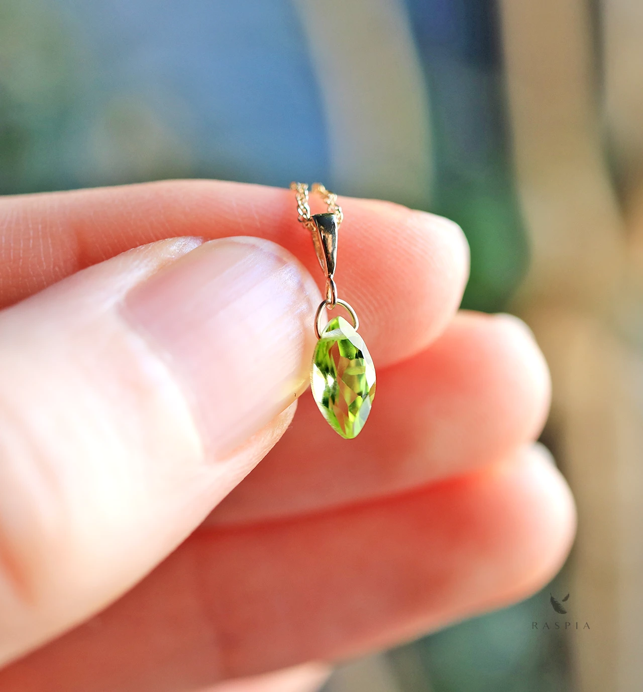 オリーブグリーンが美しい、ペリドットを使用したネックレスチャーム。