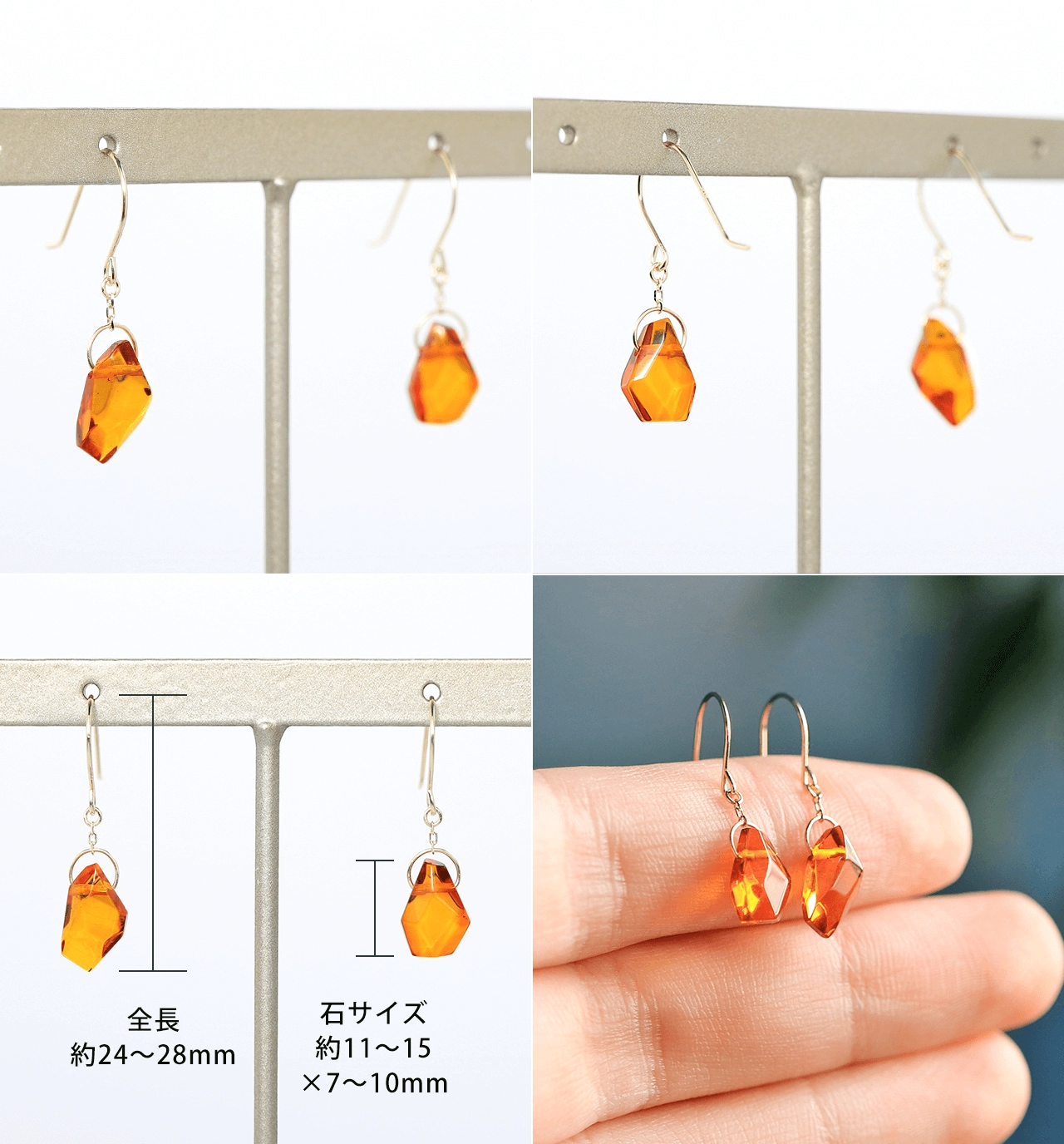 | 素材 | K10 / 琥珀(タンブルカット) ※フックピアスパーツのみK18に変更可能です。(チャーム部分の金具はK10のままになります。) | カテゴリ | |