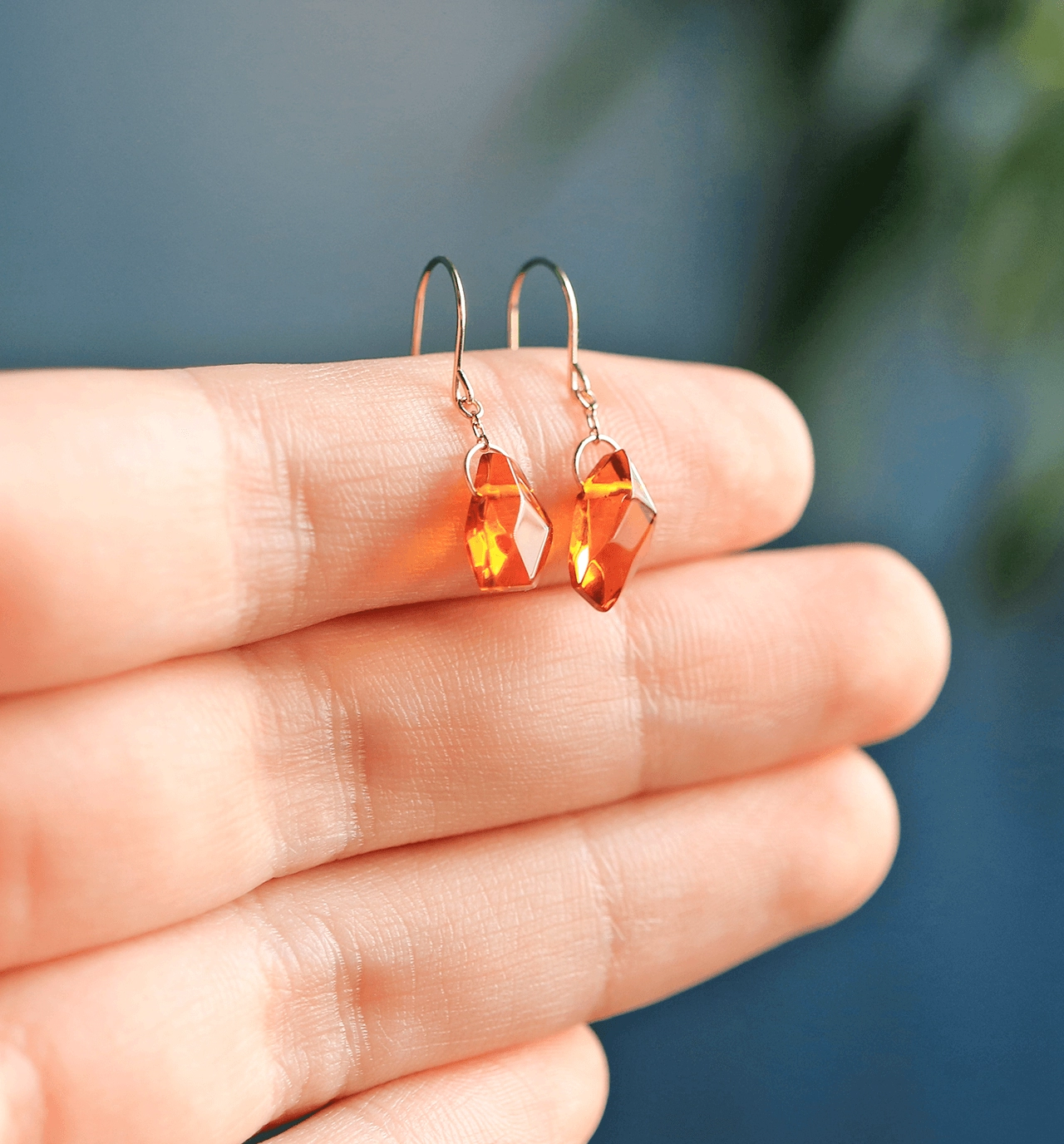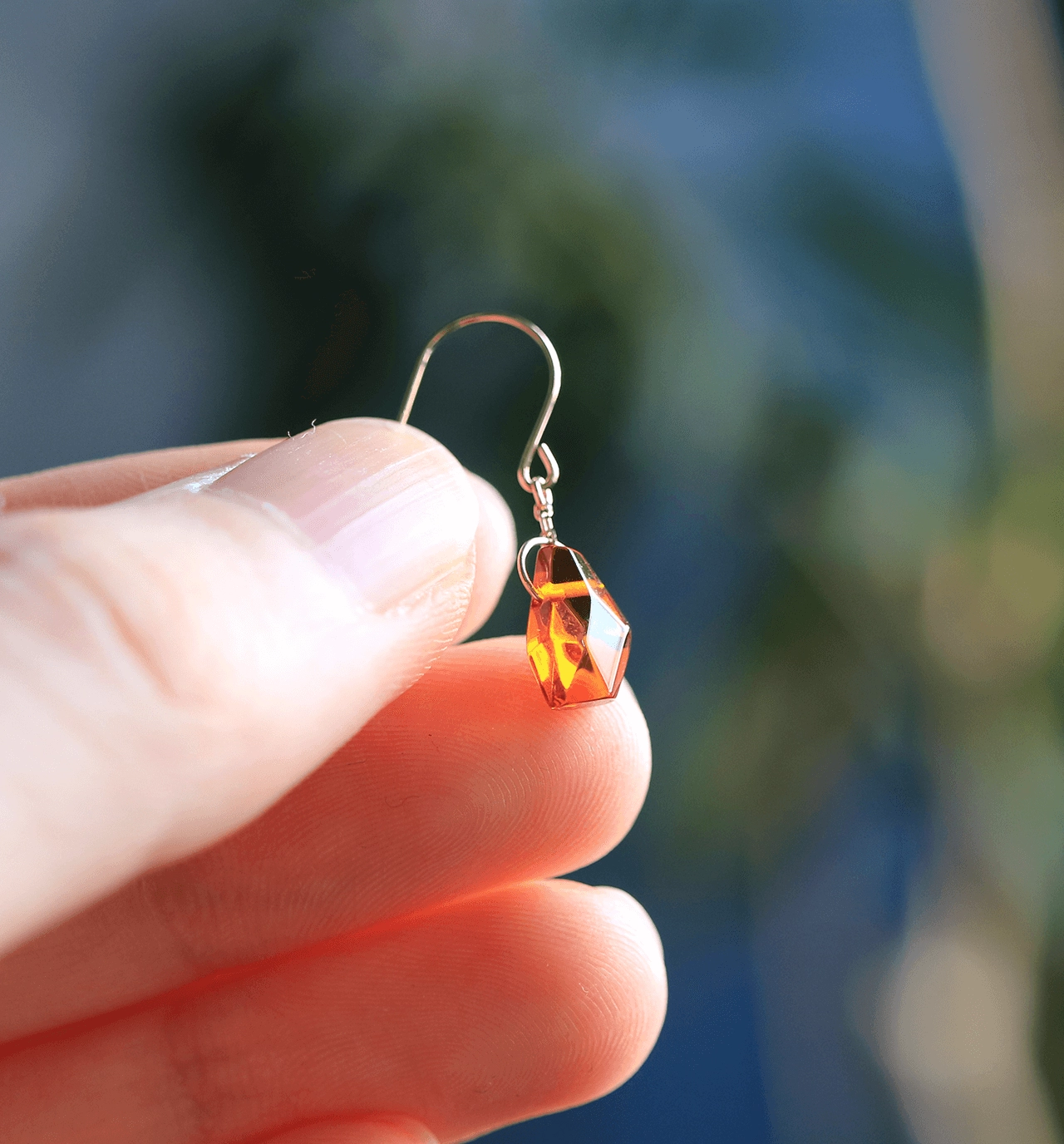 バルト海沿岸で採れる天然琥珀・バルティックアンバーを使用したフックピアスです。透明感があり、光に透かすとメイプルシロップやウイスキーのような深い色合いが見られます。