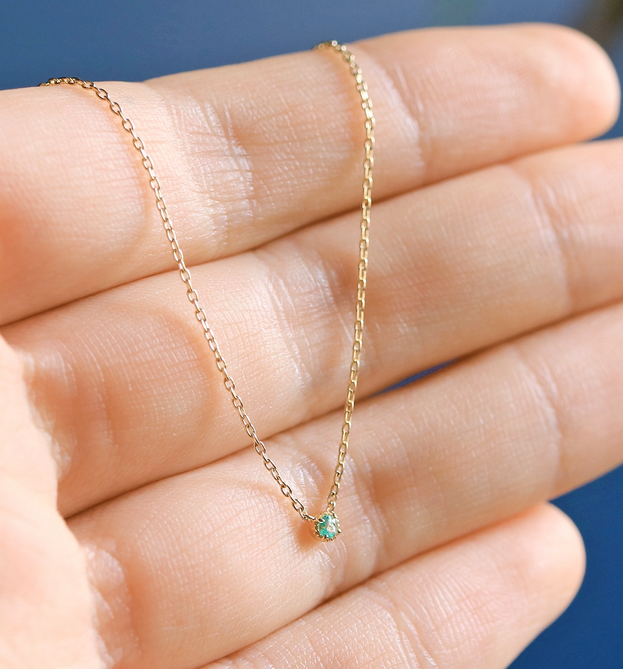 あずきチェーンにエメラルド1石の、シンプルで飽きのこないネックレスです。