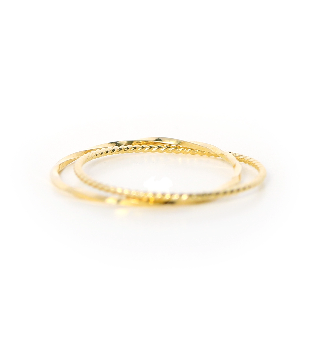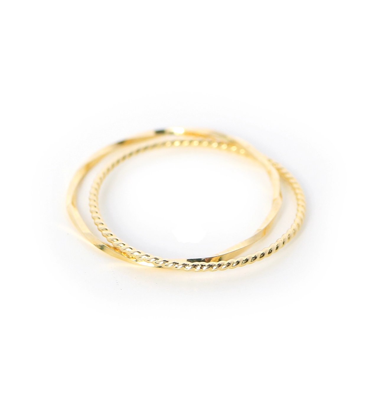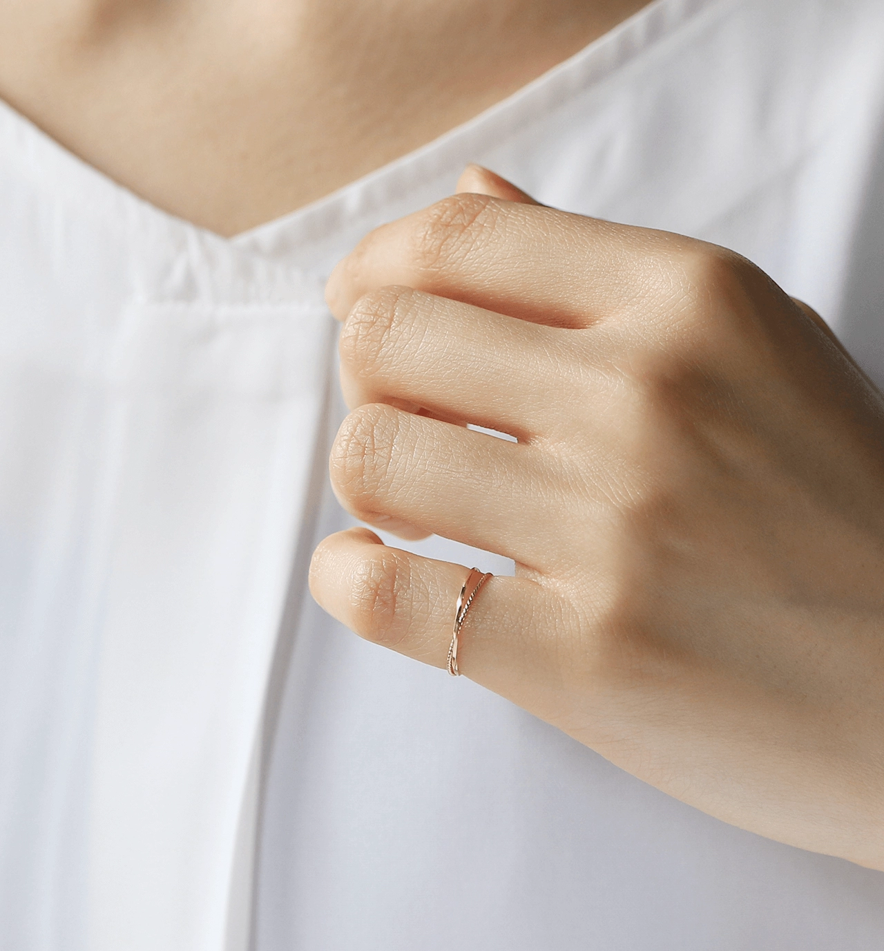 ねじれ加工を施した2つのリングがセットになった、シンプルで飽きのこないピンキーリングです。