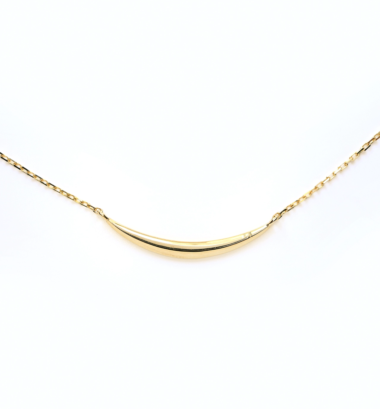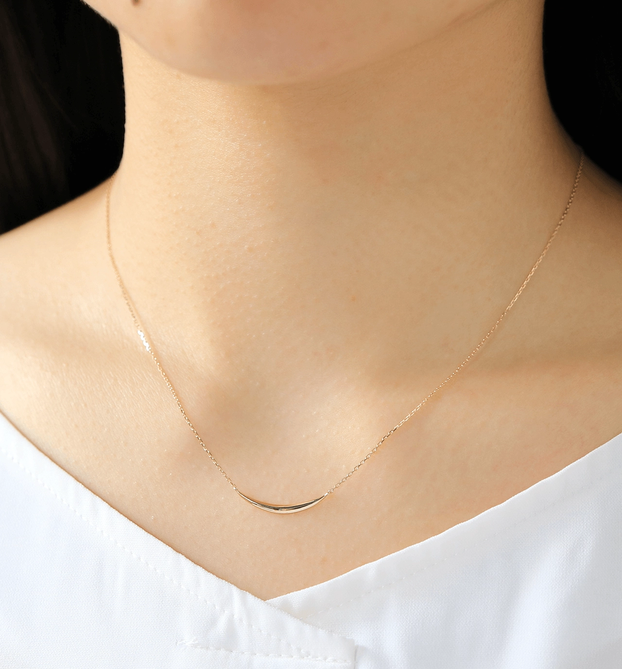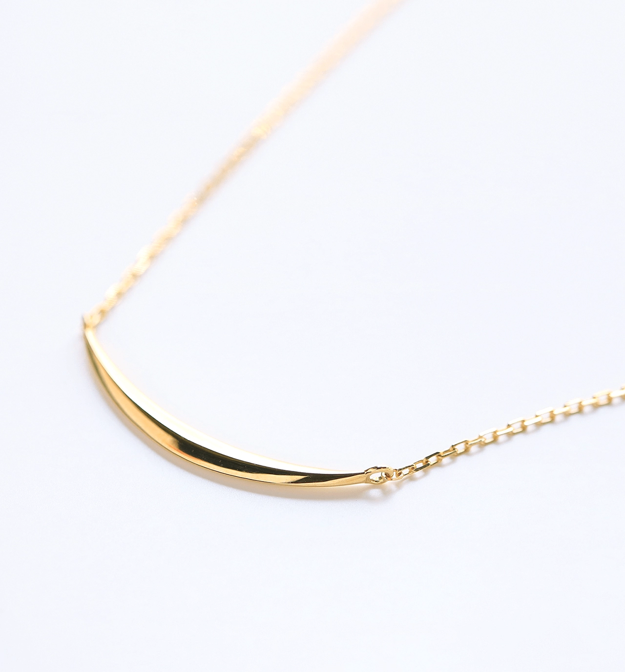 優しい曲線美のクレセントムーンのモチーフのシンプルなK10ネックレス。
