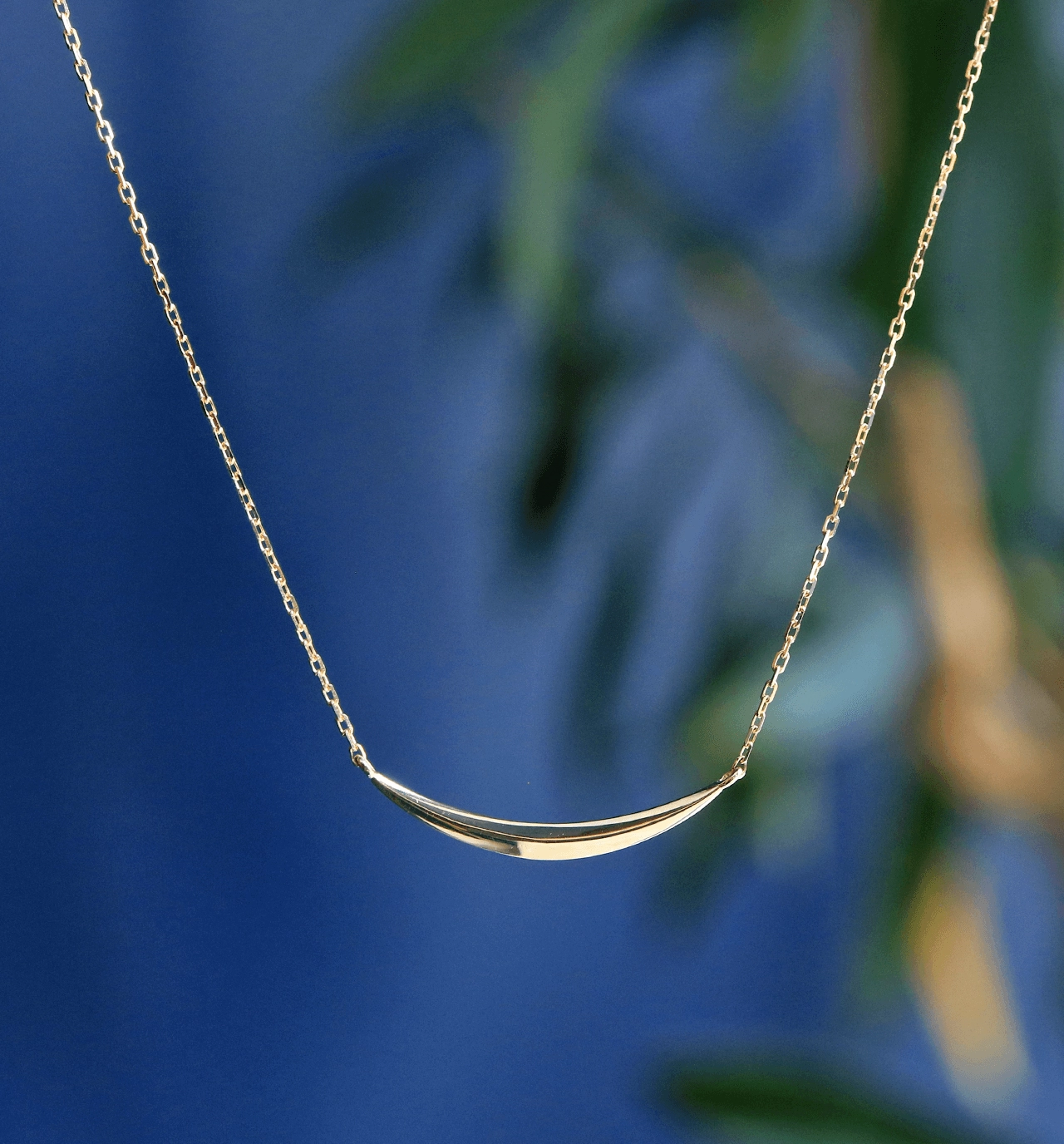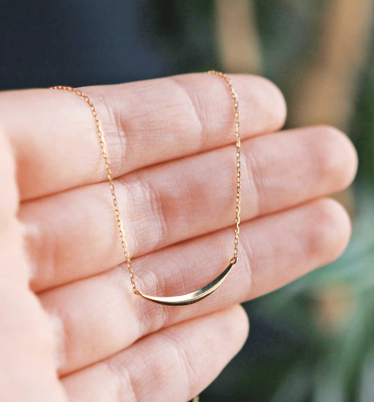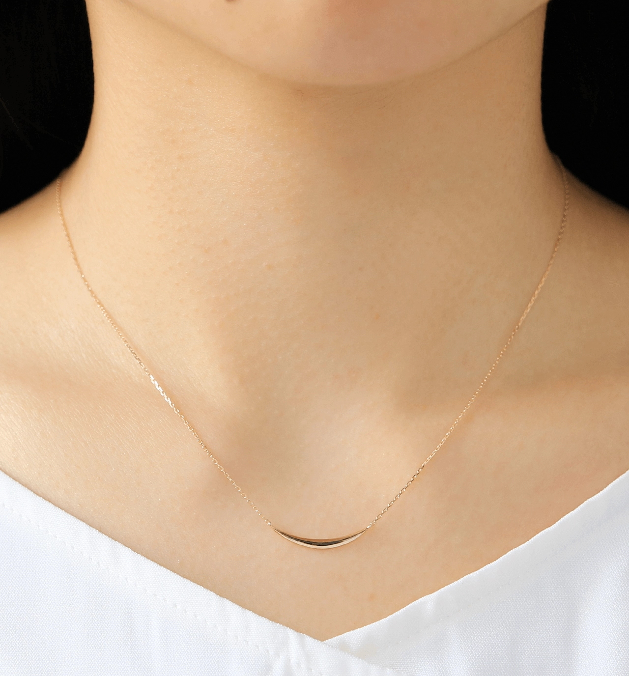 優しい曲線美のクレセントムーンのモチーフのシンプルなK10ネックレス。