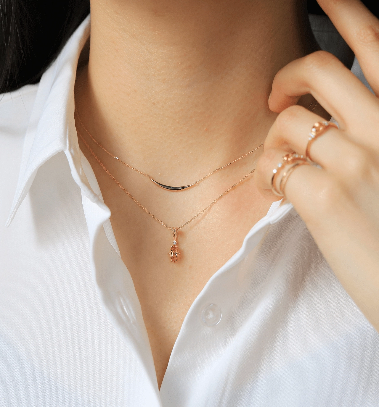 ラスピアの天然石ネックレスとの重ね付けにもぴったり。絶妙な存在感でコーディネートを華やかに引き立ててくれます。