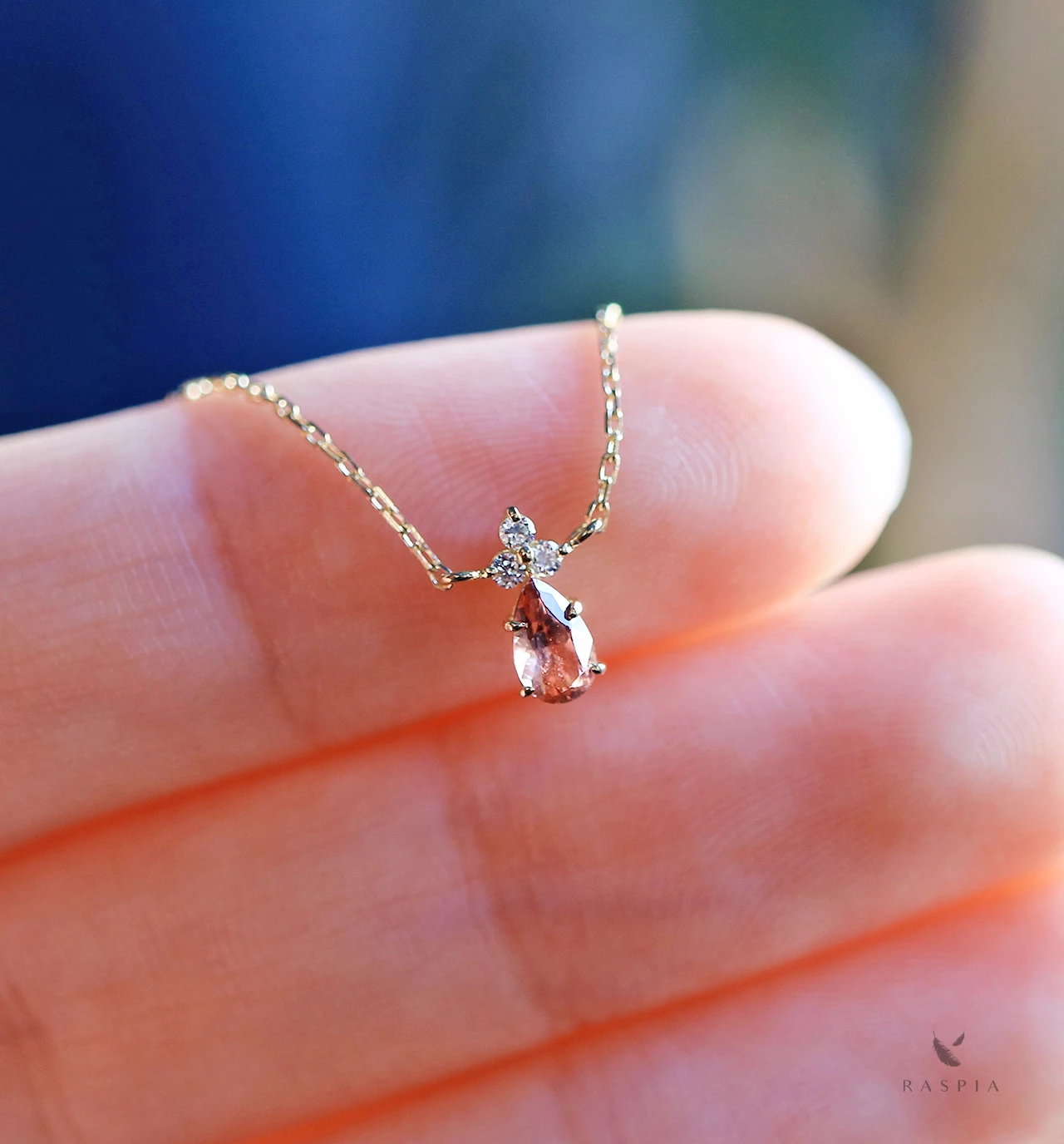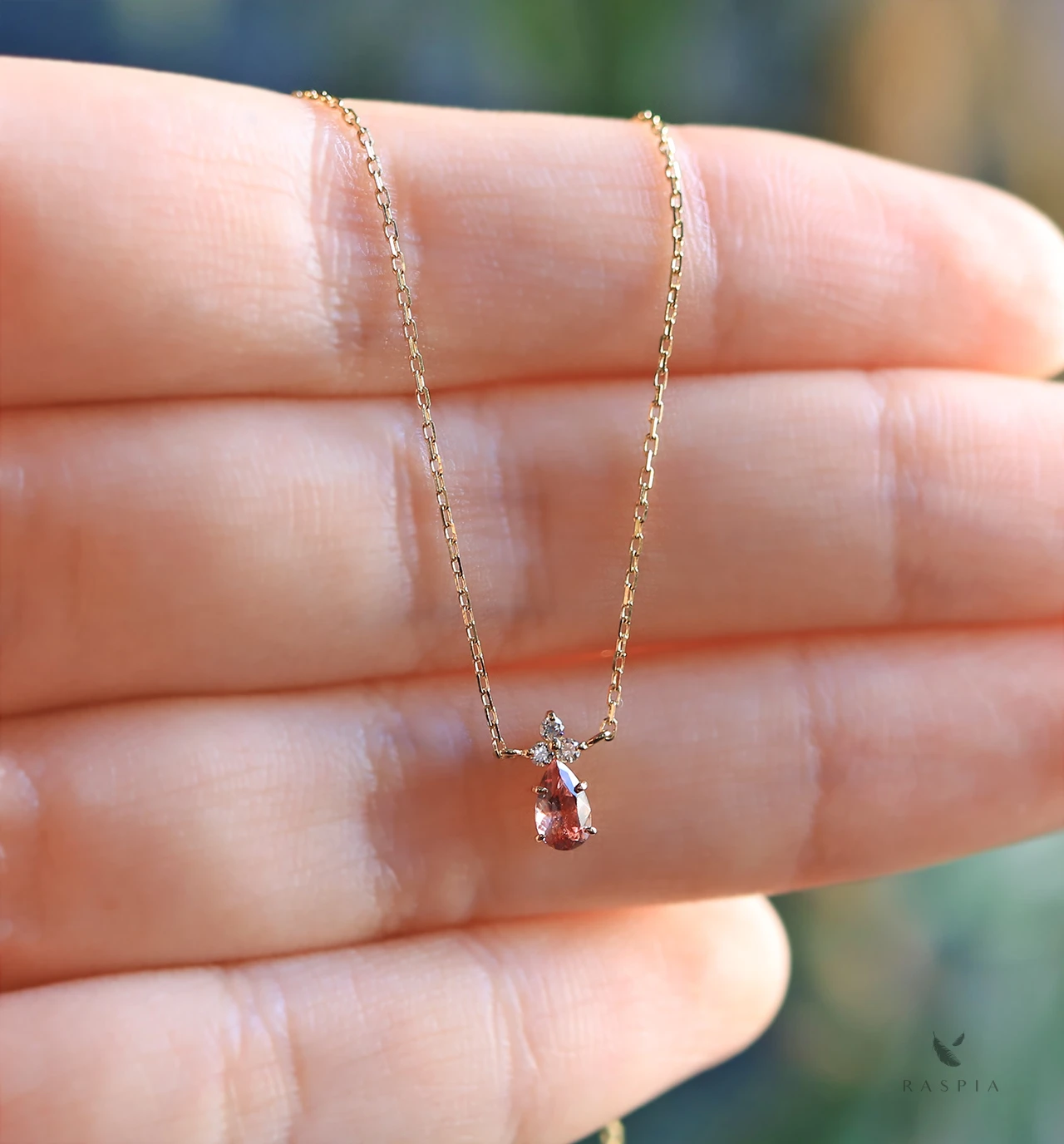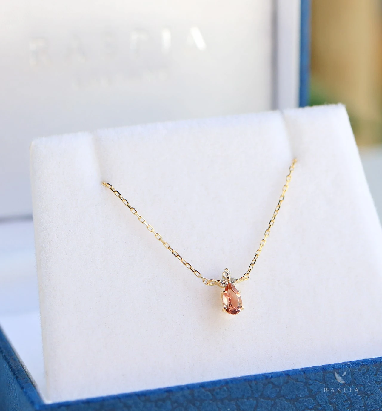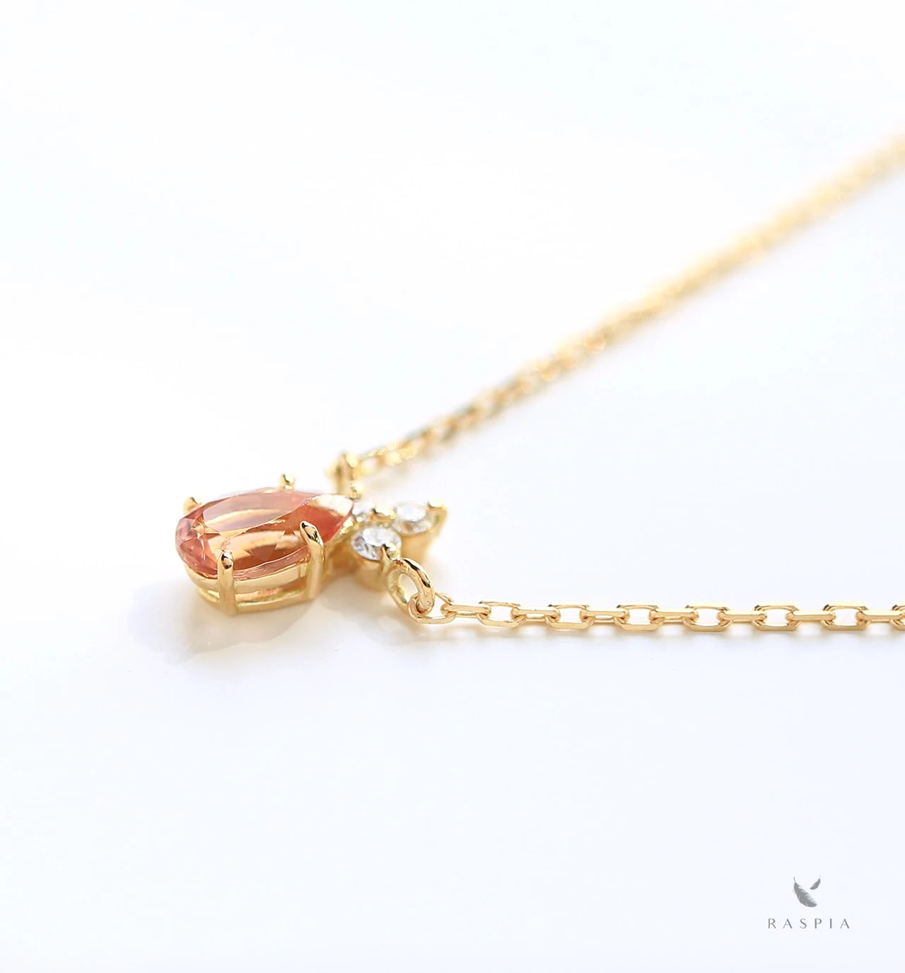 オレンジとピンクの間のような絶妙なカラーの、オレゴンサンストーンのペアシェイプを使ったネックレス。