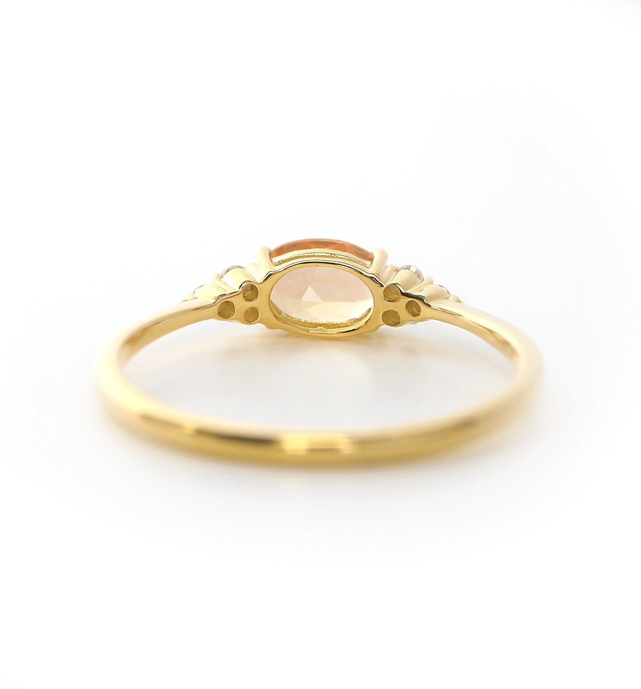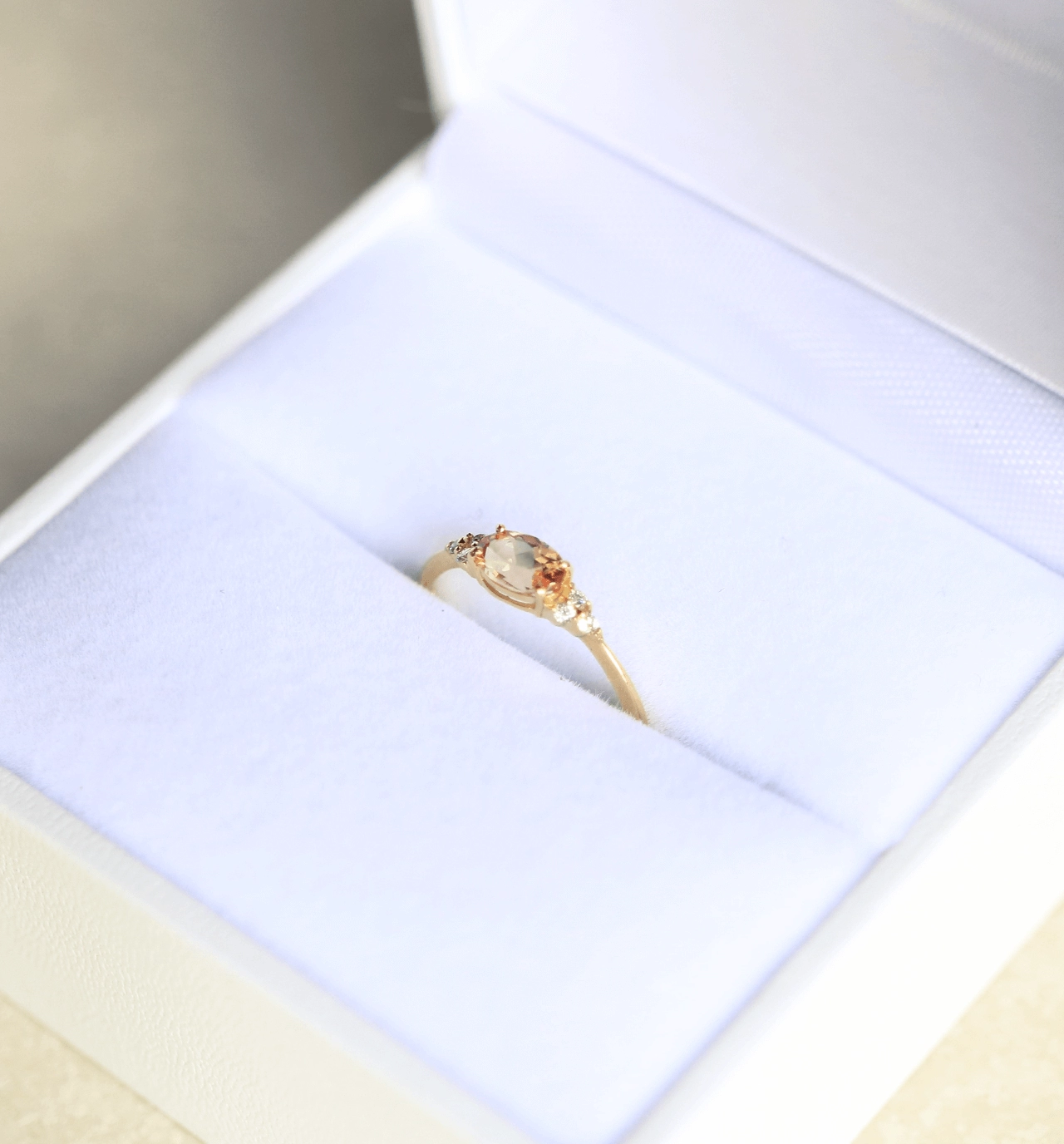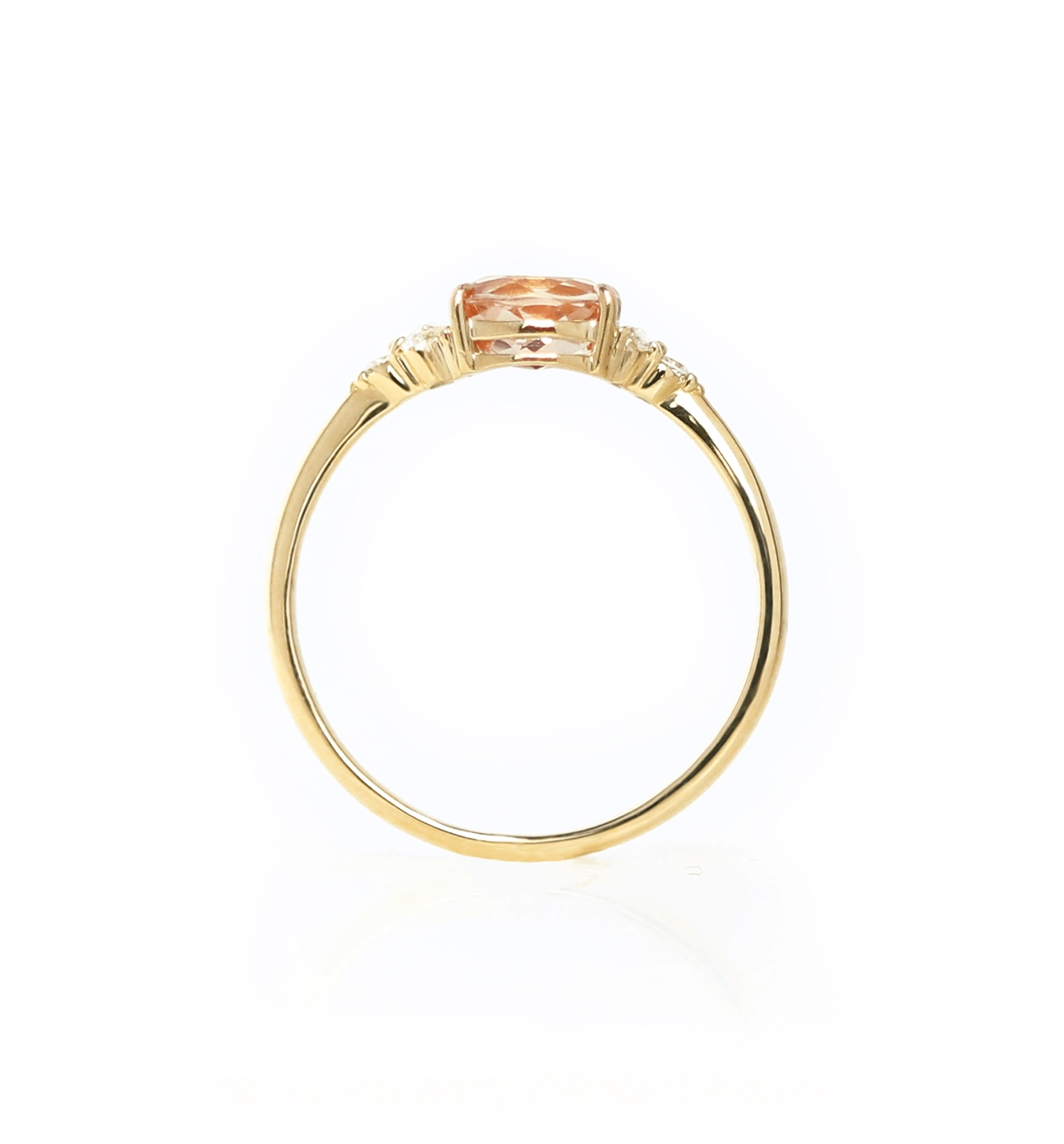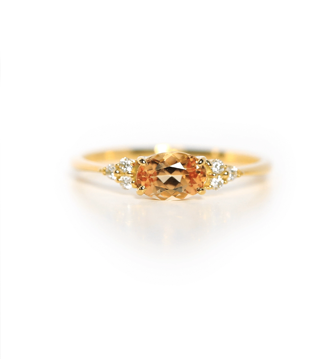 インペリアルトパーズのオーバルカットをメインに、6つのメレダイヤを左右にセットしたK18リングです。インペリアル(皇帝)の名が付けられた特別なトパーズは、シェリー酒カラーが上質な品質の宝石として人気です。トパーズは11月の誕生石です。