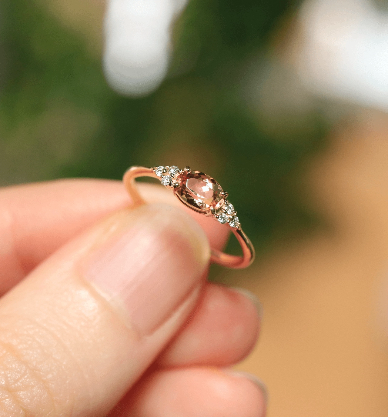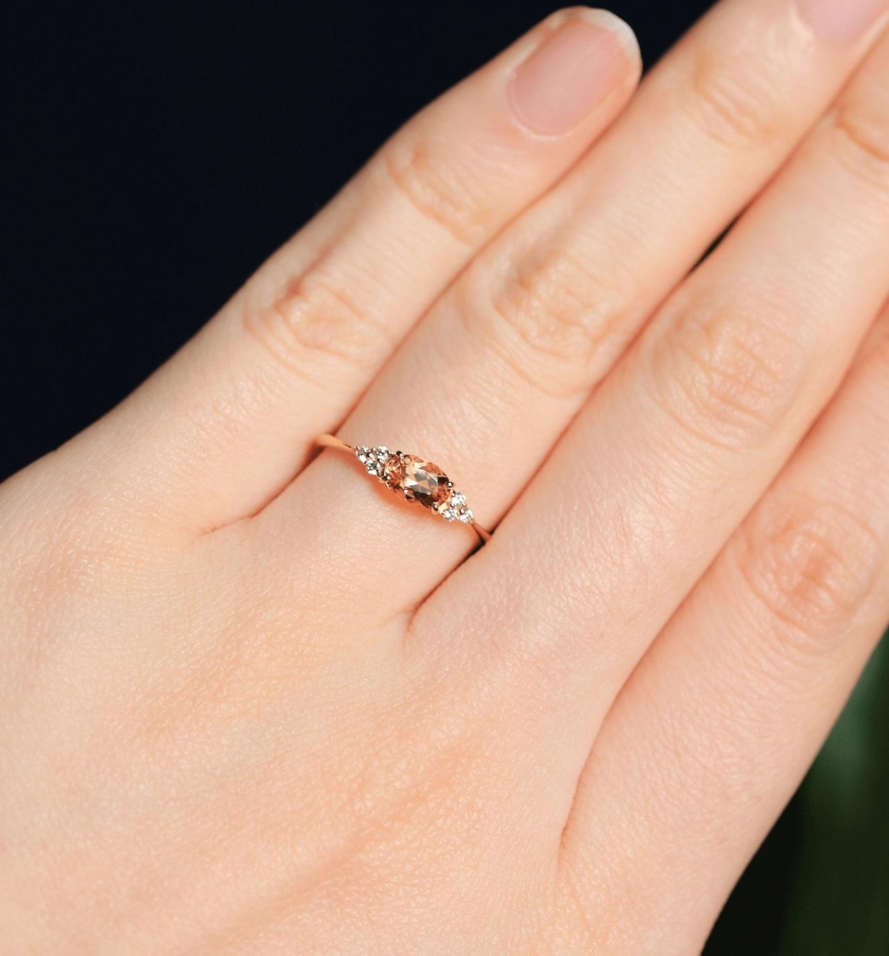 石が主役になる、そして鮮やかなカラーストーンの美しいきらめきが楽しめるリングになるように、細部までこだわり作り上げています。メイン石の左右に配置されたダイヤモンドがさらに気品とジュエリーの魅力を引き立たせます。指輪の重ね付けをしたり、Elloシリーズのネックレスと合わせたりと様々なコーディネートでお楽しみください。