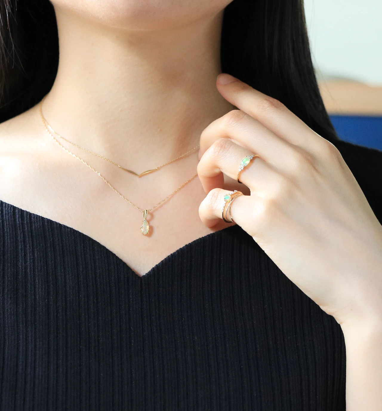 エチオピア産の高品質なオパールは、虹のような多色の色彩を示す現象「遊色効果」が高く魅力的です。使用しているオパールの表面はファセットカットを施し、熟練のカット職人による研磨が更に独特の美しさを演出してくれます。
