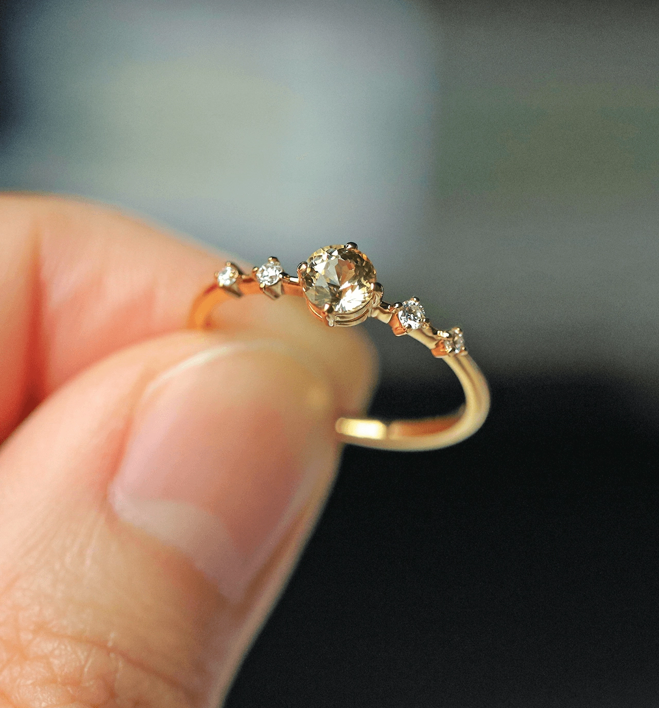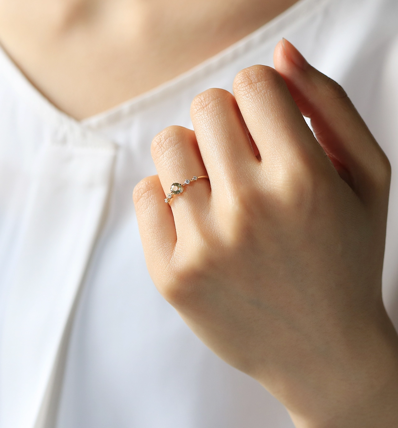 石が主役になる、そして鮮やかなカラーストーンの美しいきらめきが楽しめるリングになるように、細部までこだわり作り上げています。指輪の重ね付けをしたり、Elloシリーズのネックレスと合わせたりと様々なコーディネートでお楽しみください。
