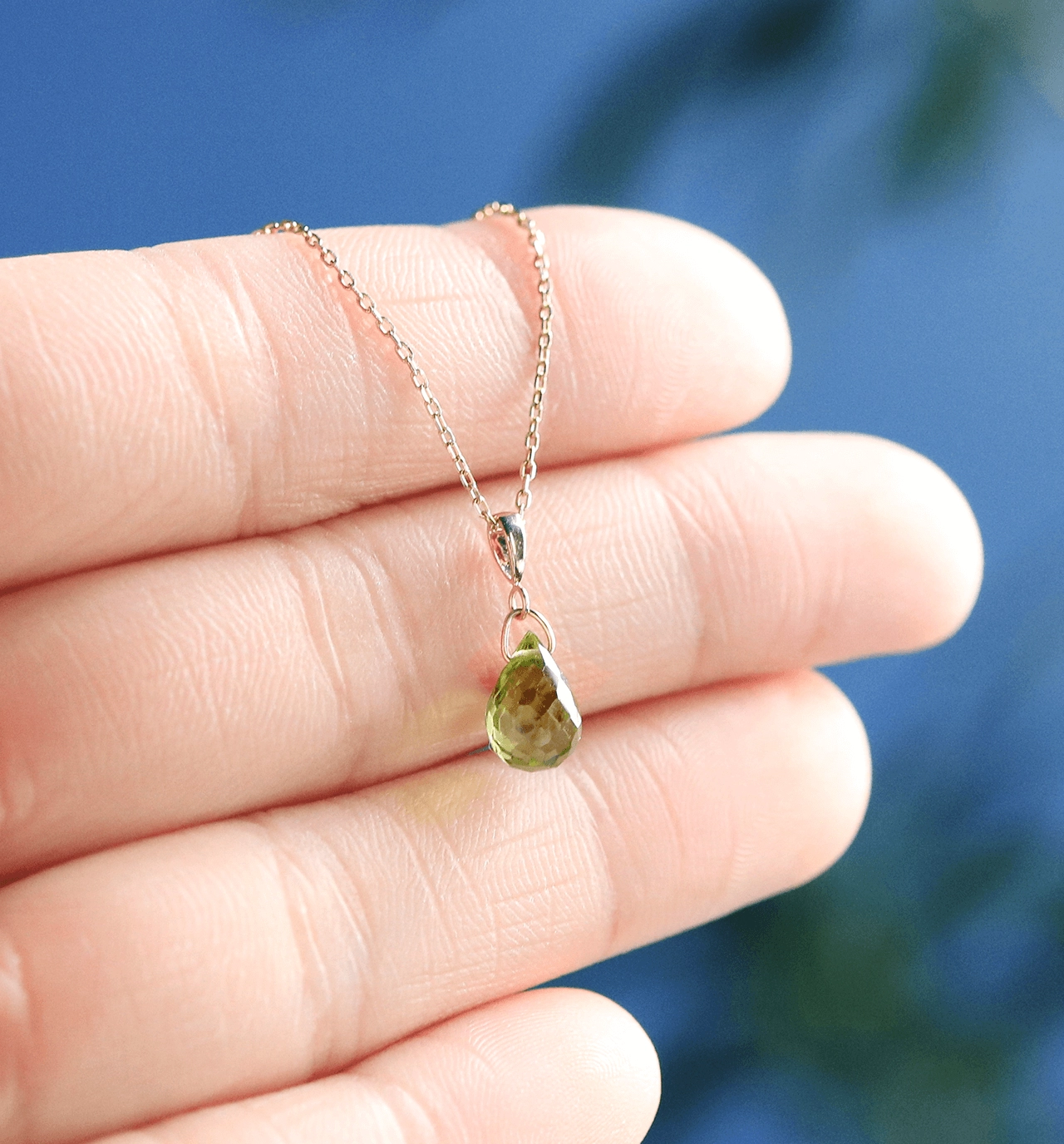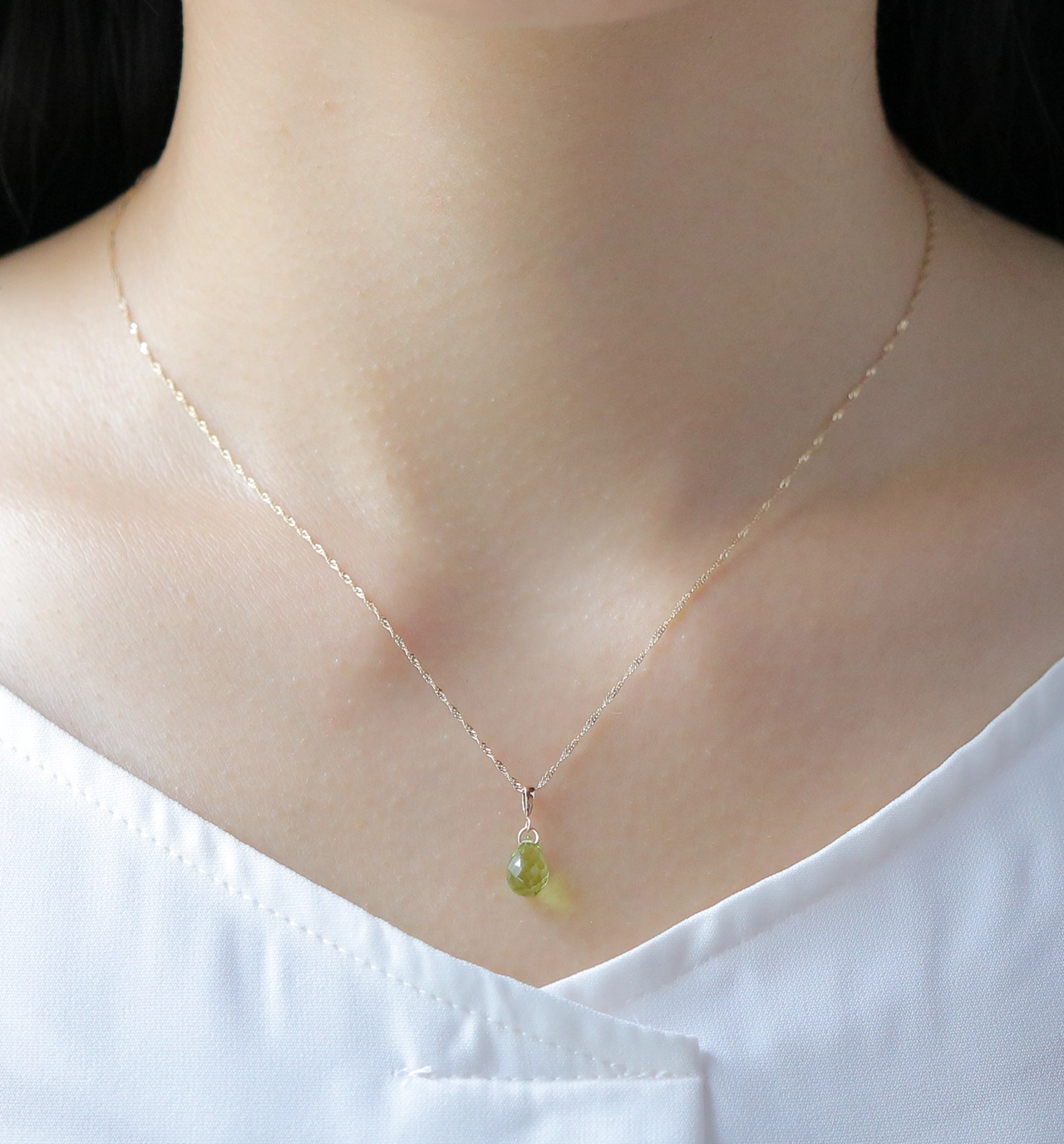 オリーブグリーンが美しい、ペリドットを使用したネックレスチャーム。