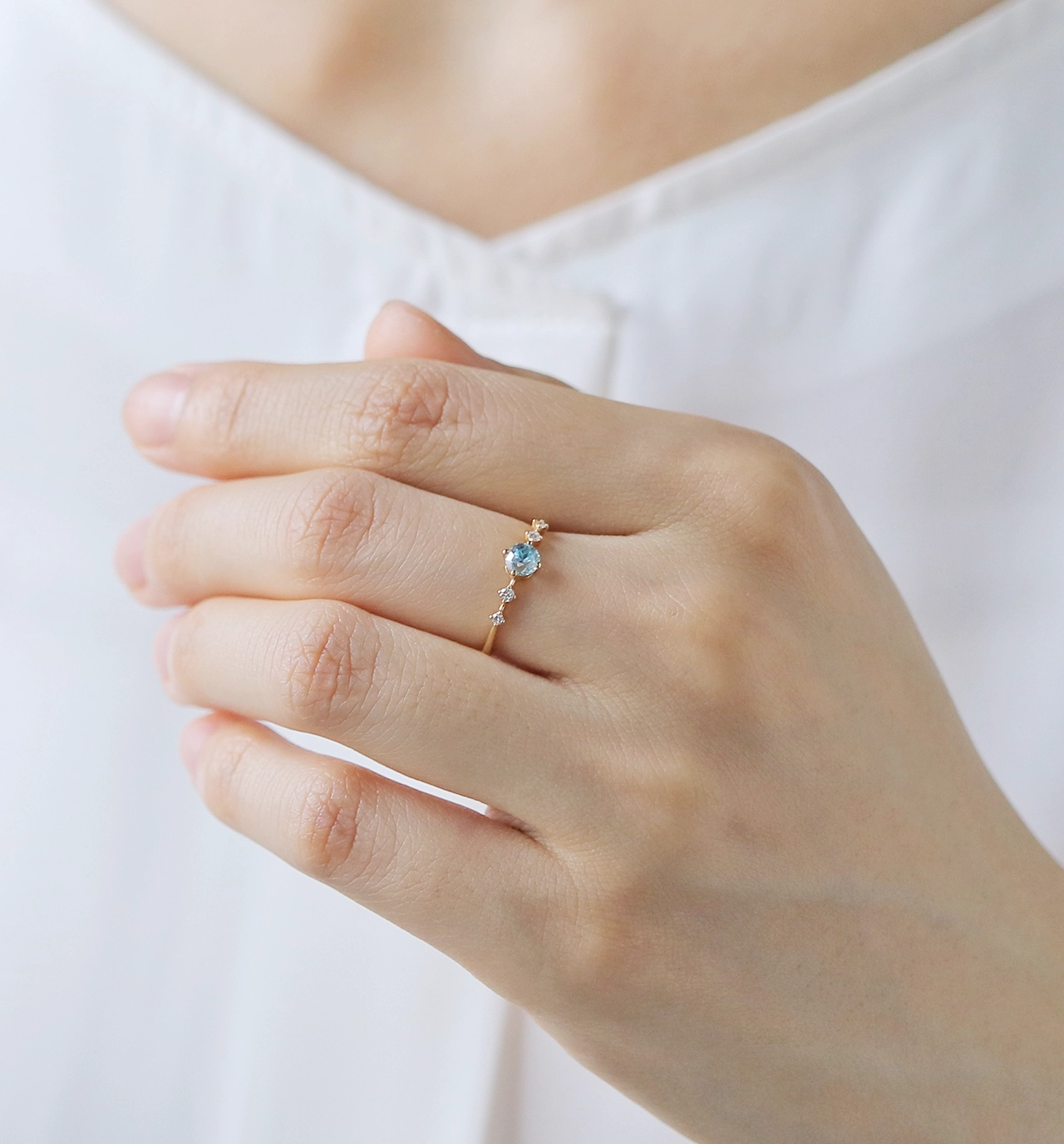 石が主役になる、そして鮮やかなカラーストーンの美しいきらめきが楽しめるリングになるように、細部までこだわり作り上げています。指輪の重ね付けをしたり、Elloシリーズのネックレスと合わせたりと様々なコーディネートでお楽しみください。