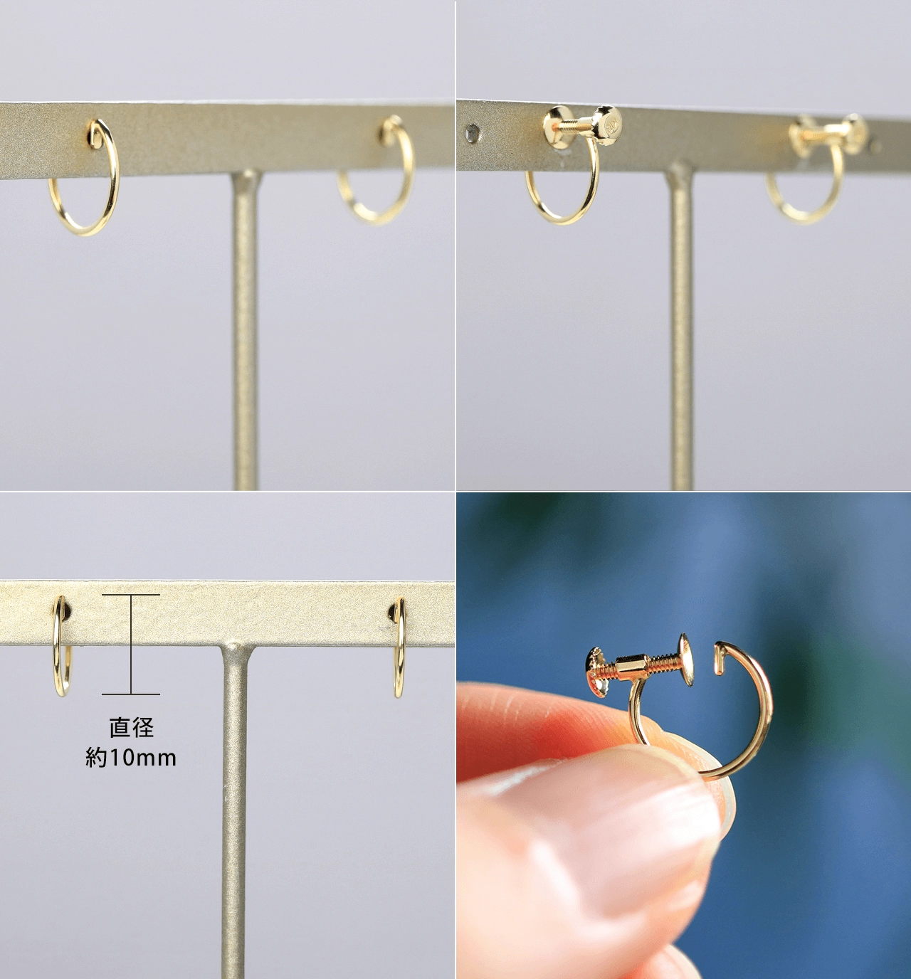| サイズ | 直径:約10mm イヤリングの太さ:0.7mm | ||