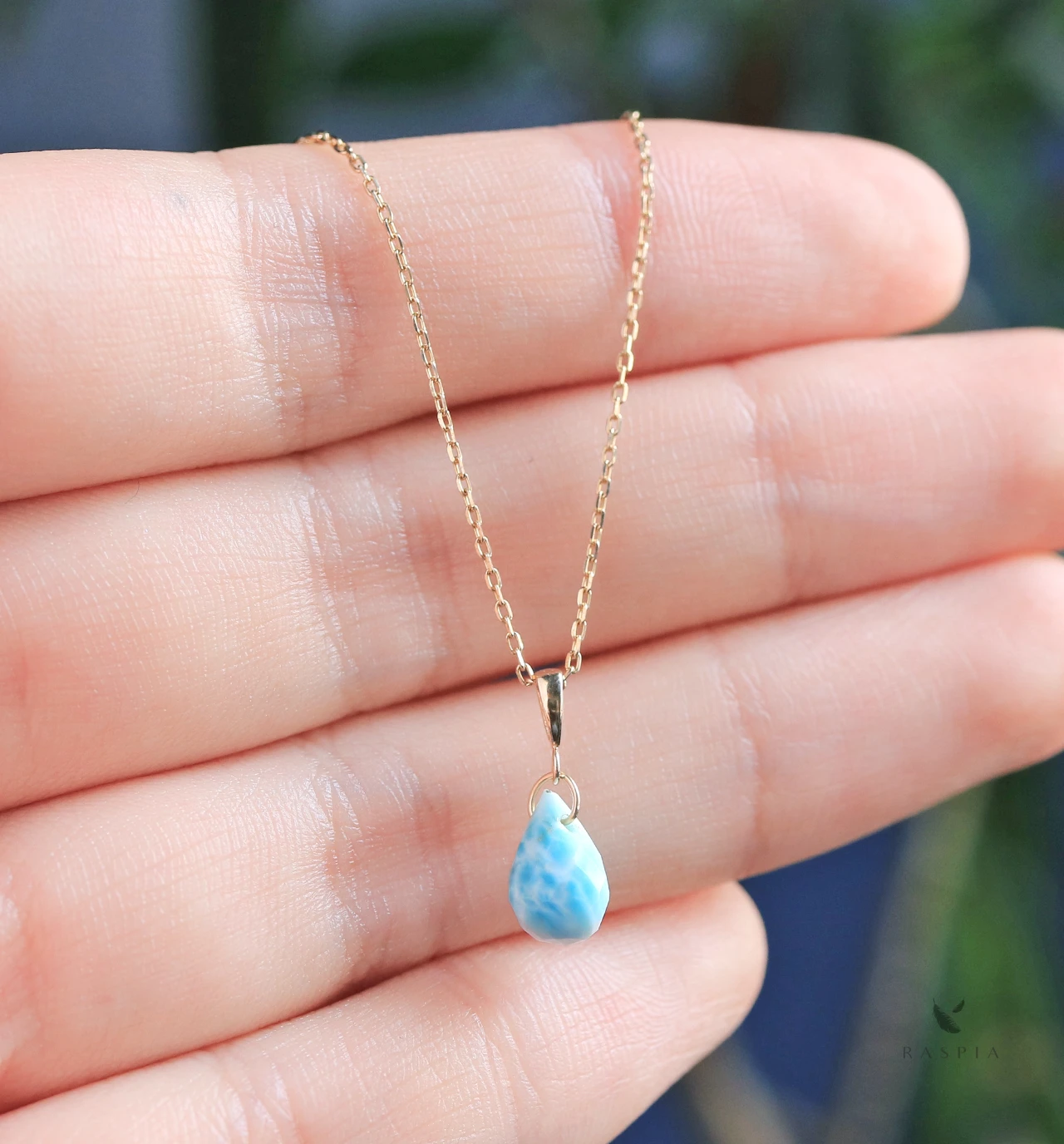 | サイズ | ラリマー:縦 約 6~10mm × 横 4~8mm バチカン内径:高さ 最大(約)3.5mm/幅 最大(約)2mm チェーン全長は40cm・45cm・50cmよりお選びいただけます。 | ||