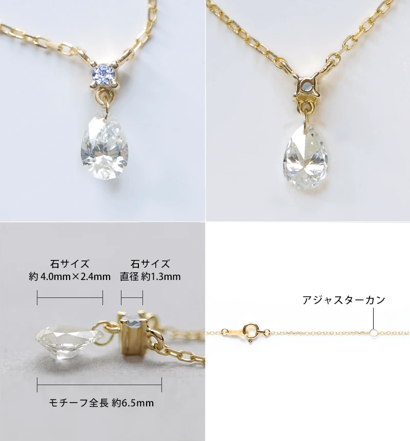 | サイズ | ネックレストップ:縦 約6.5mm×横 約2.7mm×厚み 約1.6mm チェーン全長:約40cm | ||
