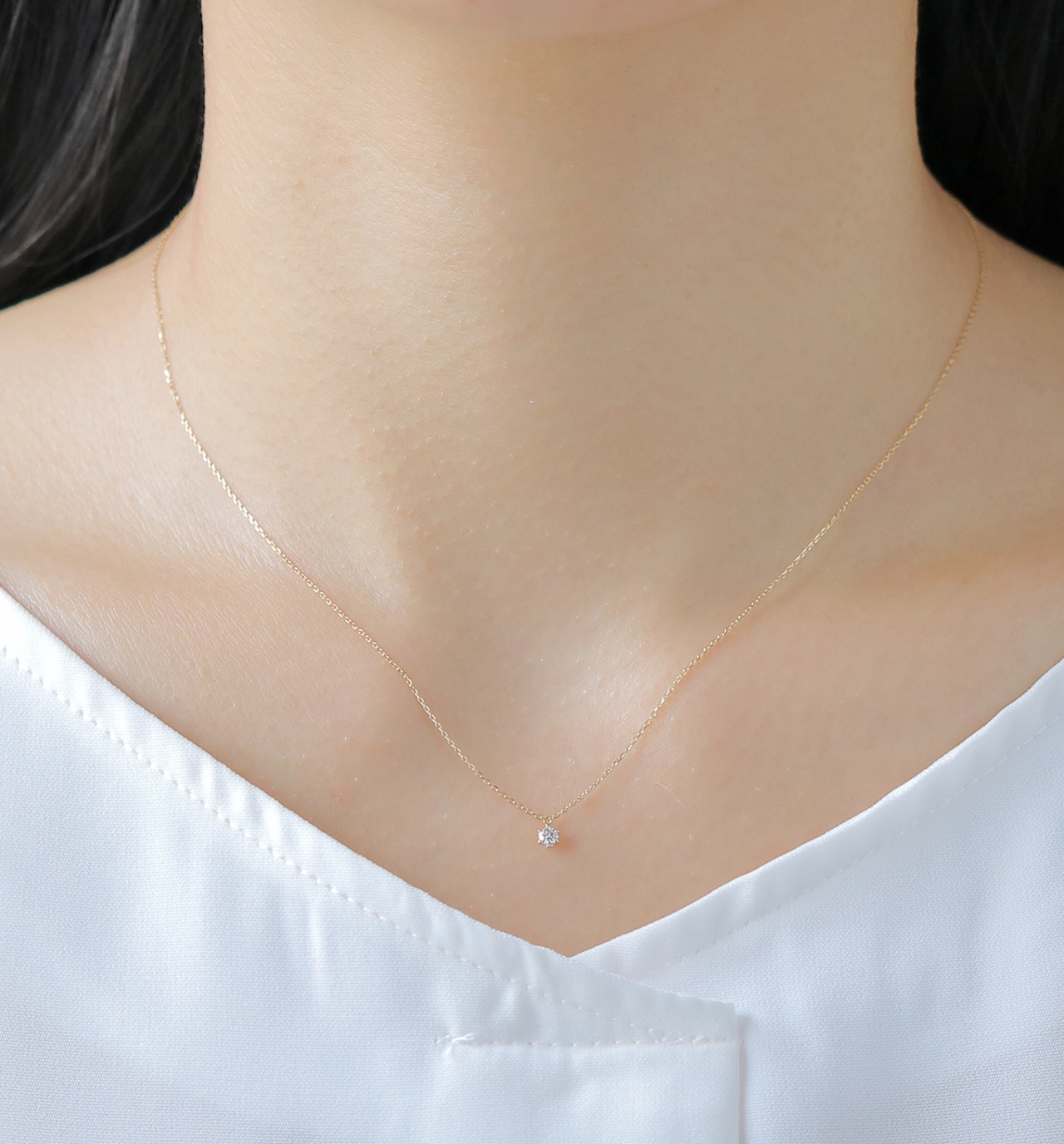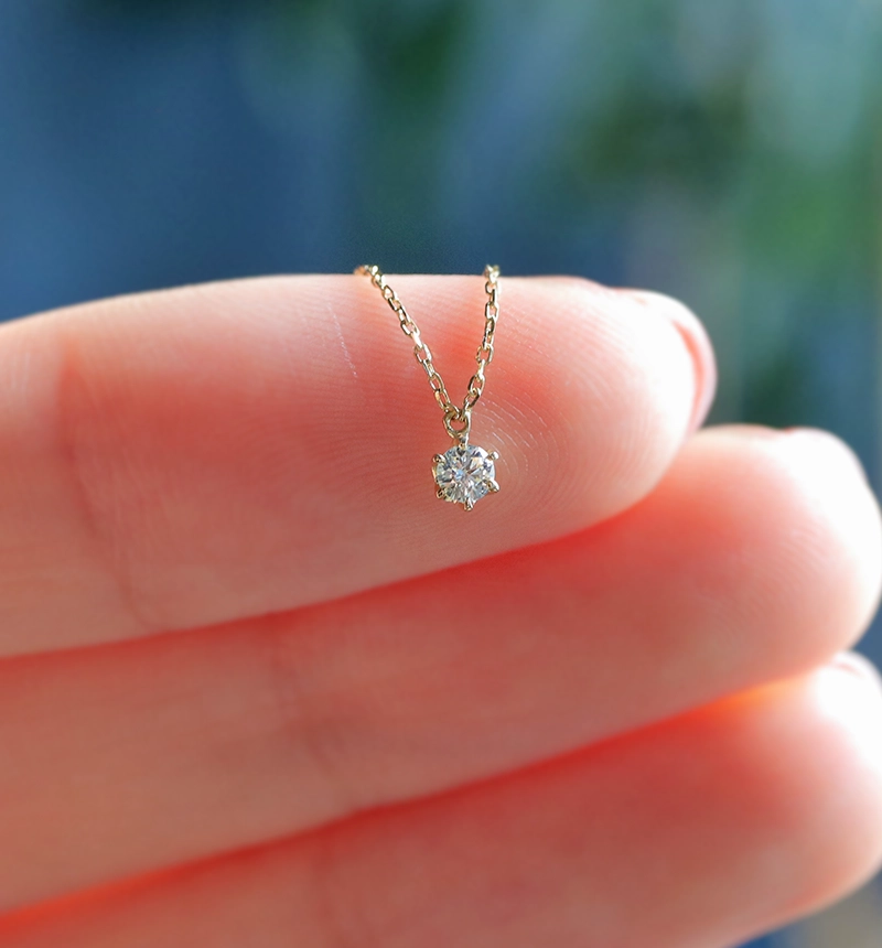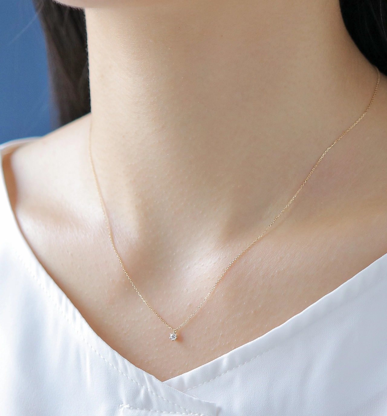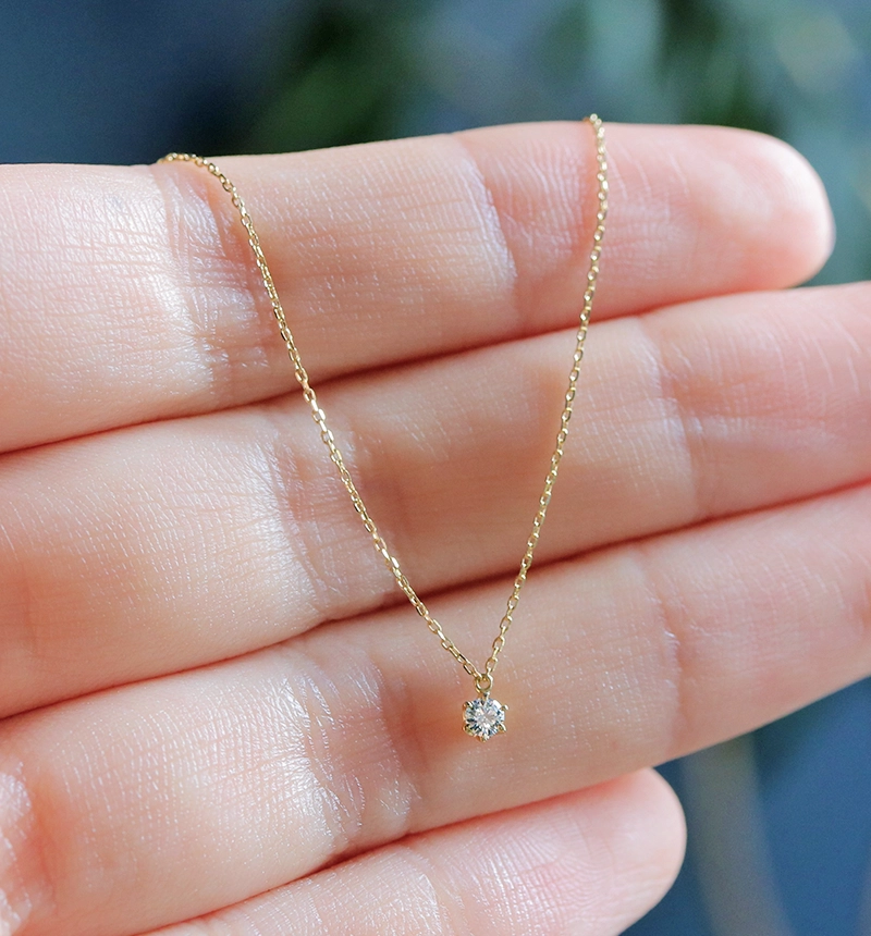 女性に人気、定番の一粒のダイヤモンドネックレス。