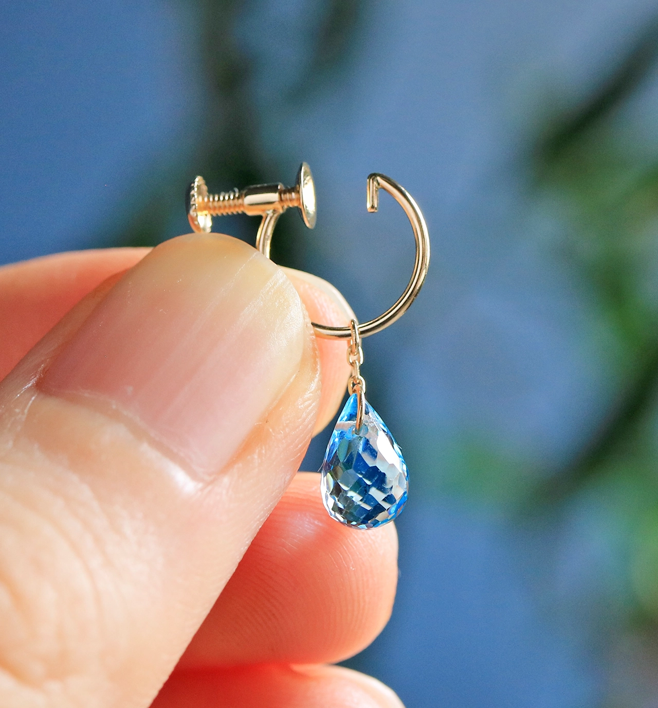 | 素材 | K10 / ブルートパーズ(ブリオレットカット) ※イヤリングパーツのみK18に変更可能です。(チャーム部分の金具はK10のままになります。) | カテゴリ | |