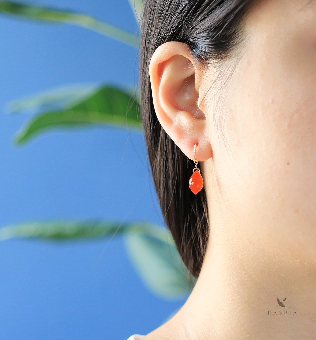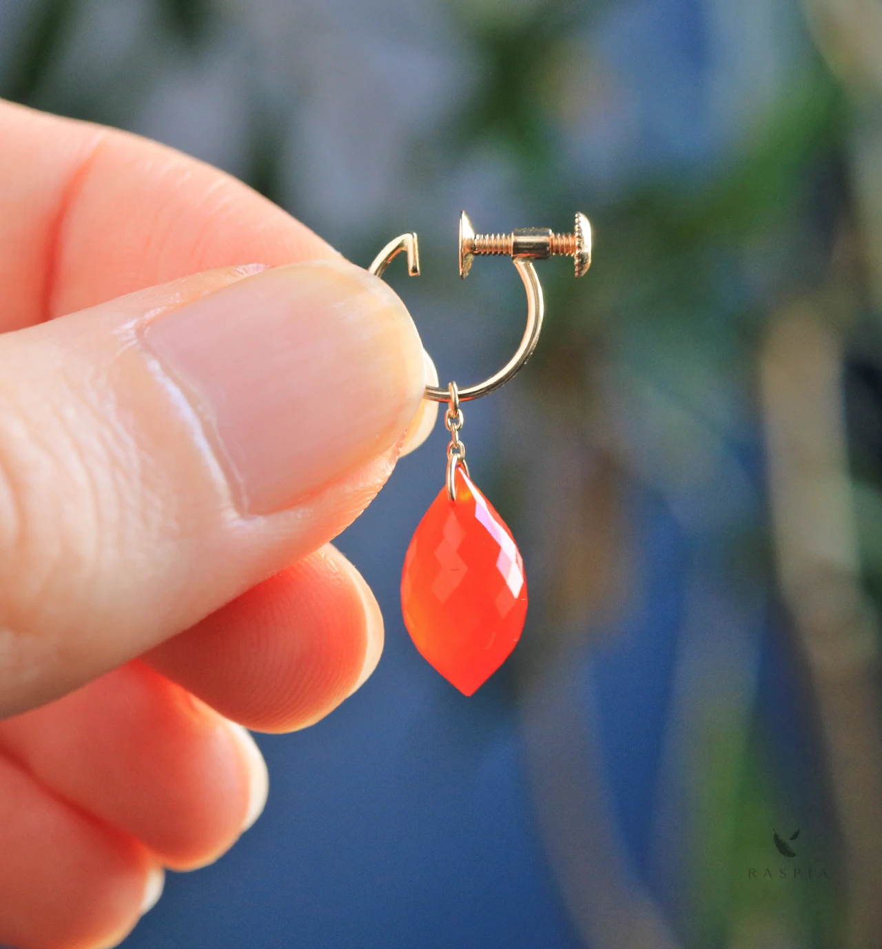 燃えるような発色と、細かいカットのきらめきが印象的なカーネリアンのイヤリング。