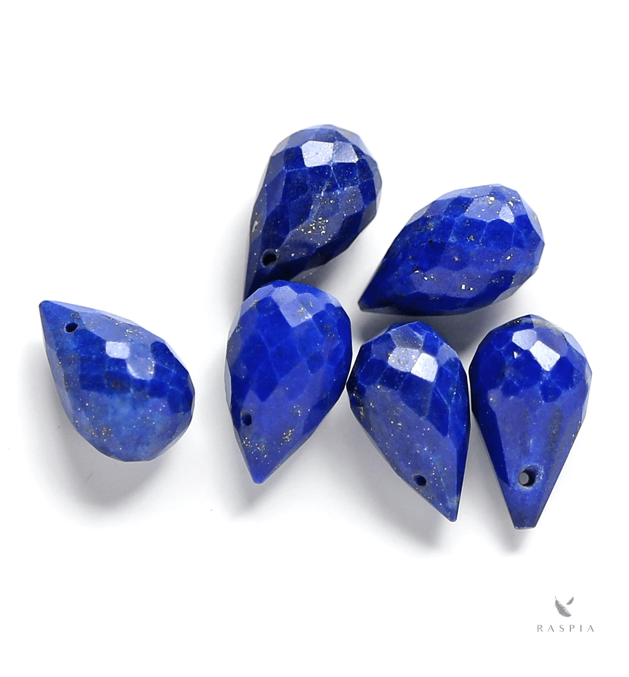 ラピスラズリは美しい岩石の集合体で形成されており、深い青色の中にパイライトの金色の斑点やカルサイトの白い部分が、ラピスラズリに輝きとアクセントを生み出しています。