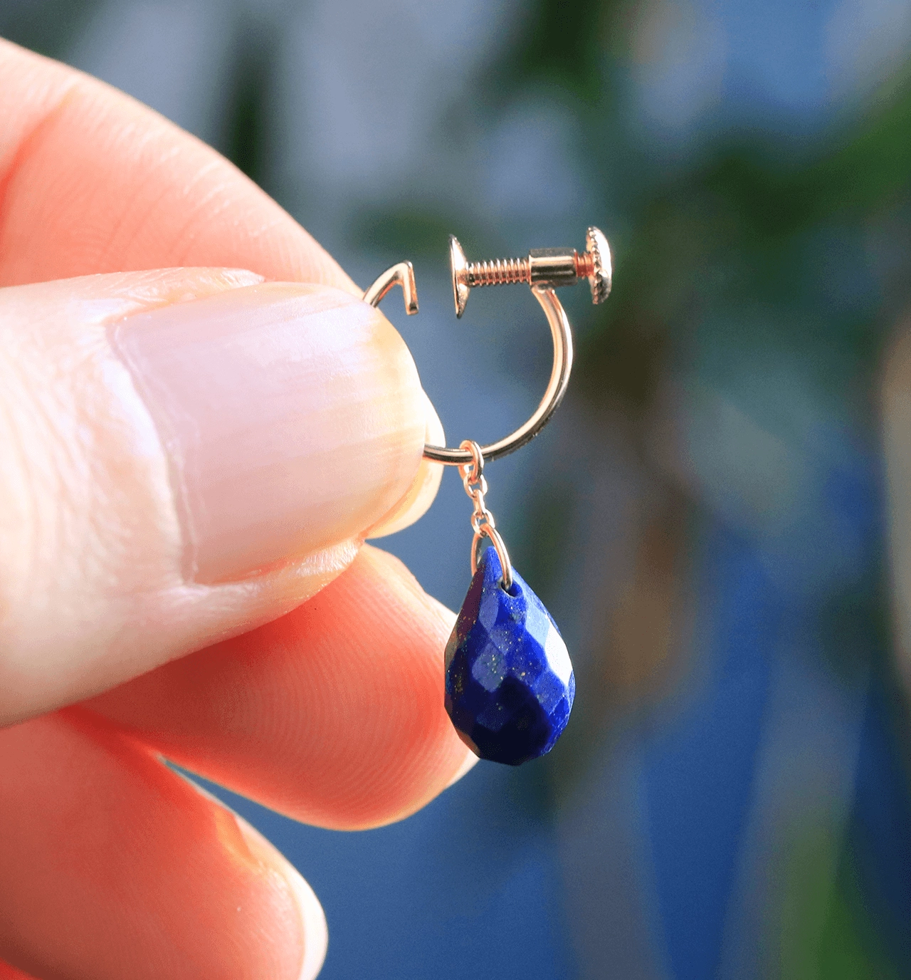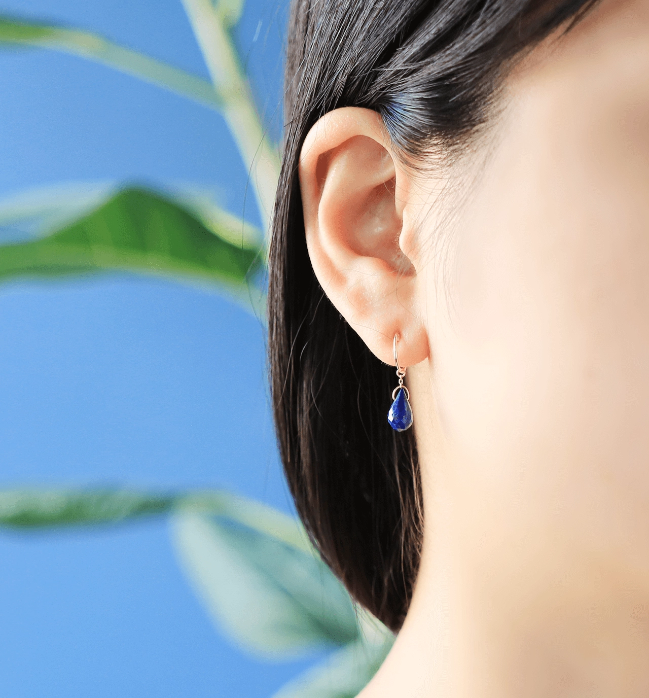 | 素材 | K10 / ラピスラズリ(ブリオレットカット) ※イヤリングパーツのみK18に変更可能です。(チャーム部分の金具はK10のままになります。) | カテゴリ | |