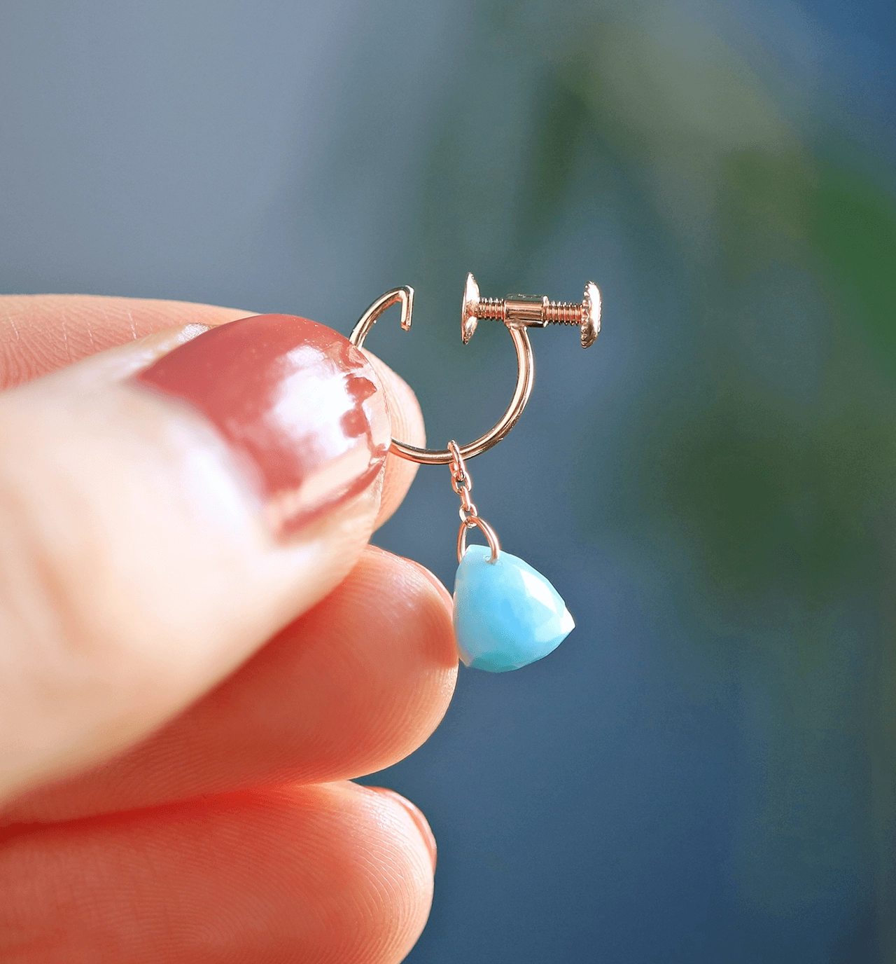 イヤリングのネジパーツはさりげなく、正面からみると華奢なフープピアスのように見えます。ミニマルなデザインながら耳にしっかりと留まってくれます。