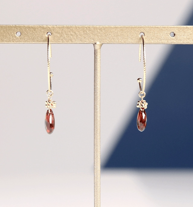 シックな赤のアルマンディンガーネットを使用したピアス。深い赤色は大人の女性の魅力をより引き立たせます。