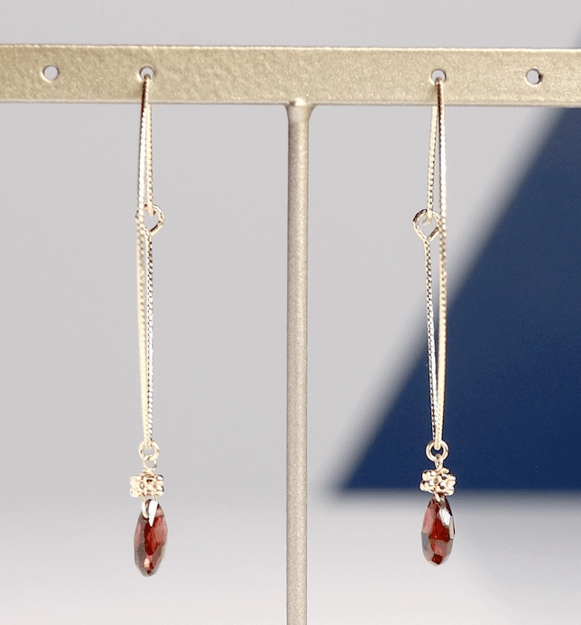 シックな赤のアルマンディンガーネットを使用したピアス。深い赤色は大人の女性の魅力をより引き立たせます。