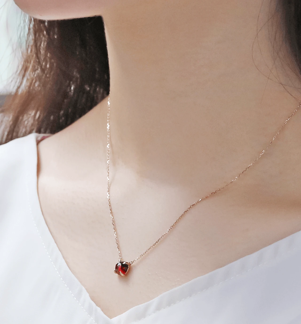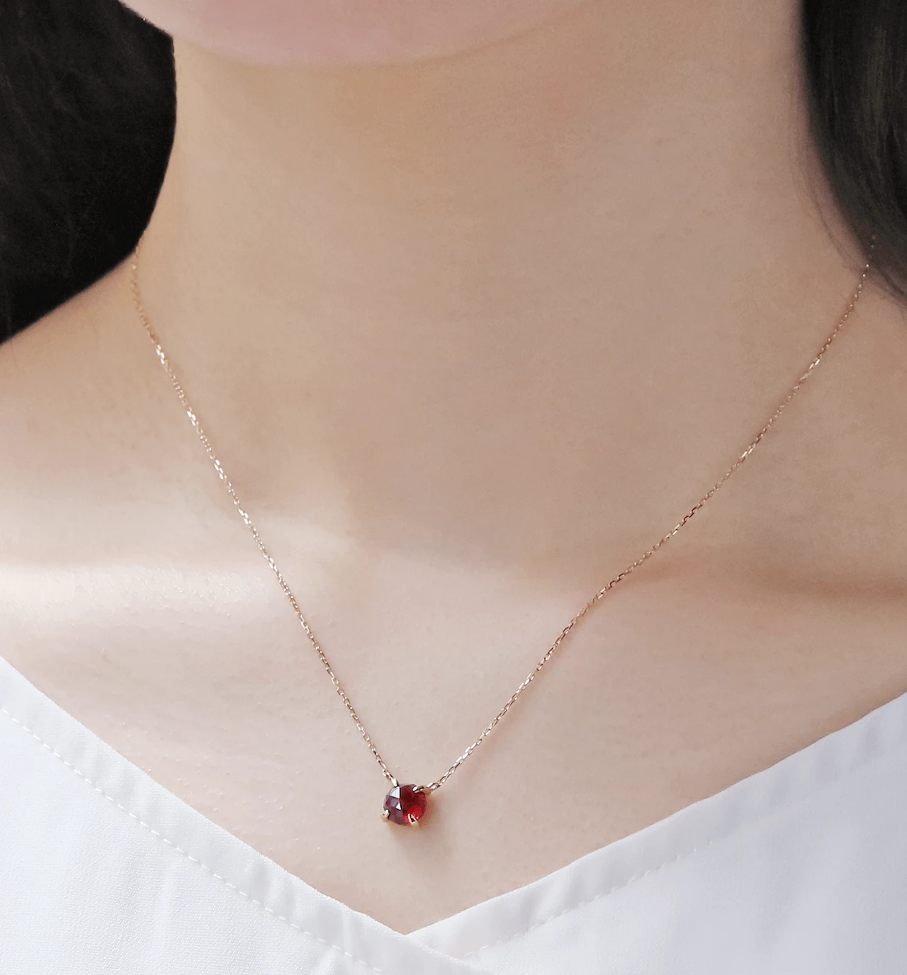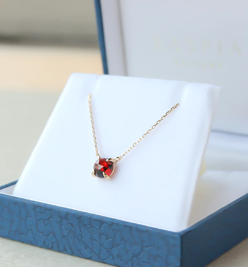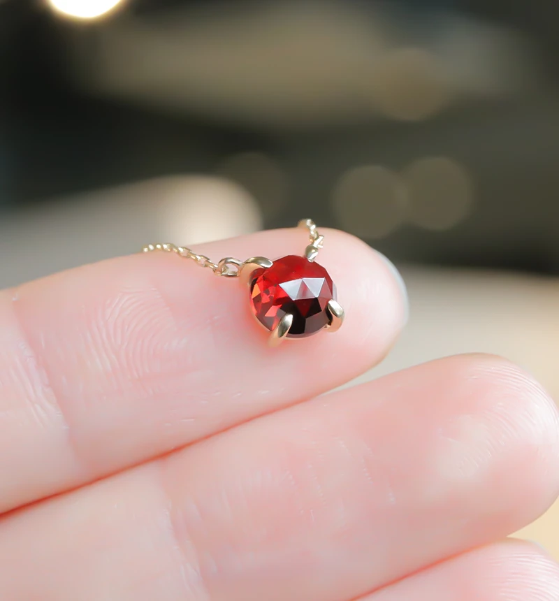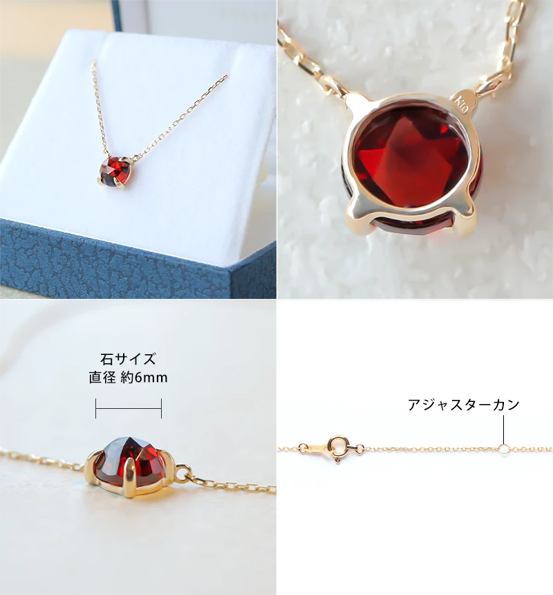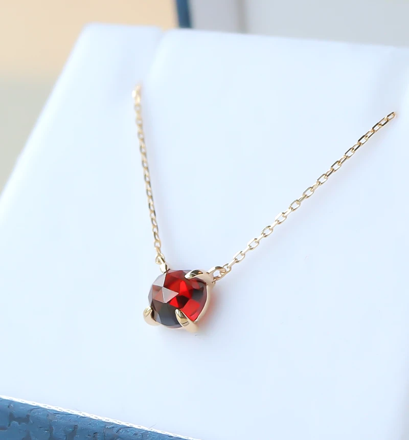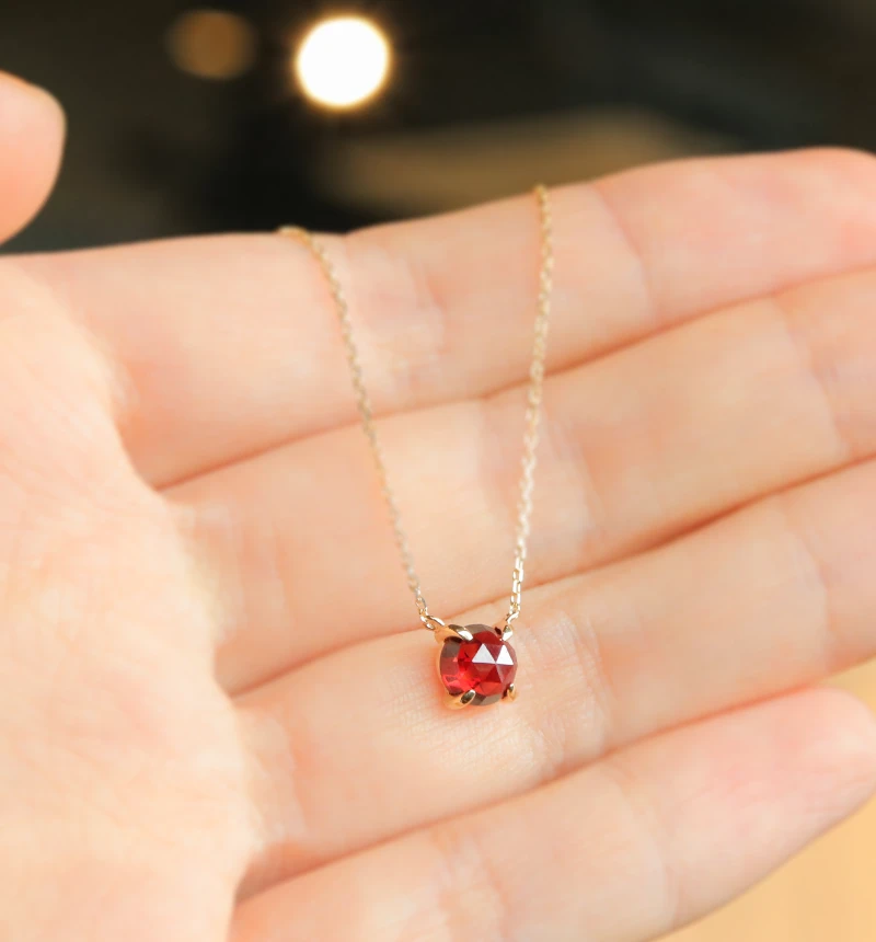 特有のレッドカラーが魅力的なローズカットのガーネットを使用したK10ネックレスです。ローズカットの表面に施された24面のカット面が光を反射し、キラキラと美しく輝きます。ガーネットは1月の誕生石です。