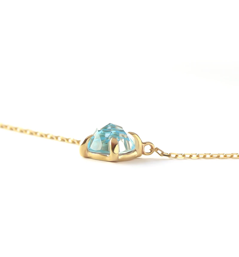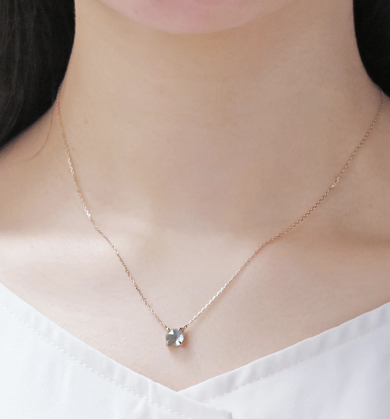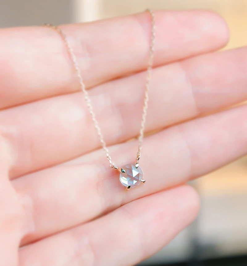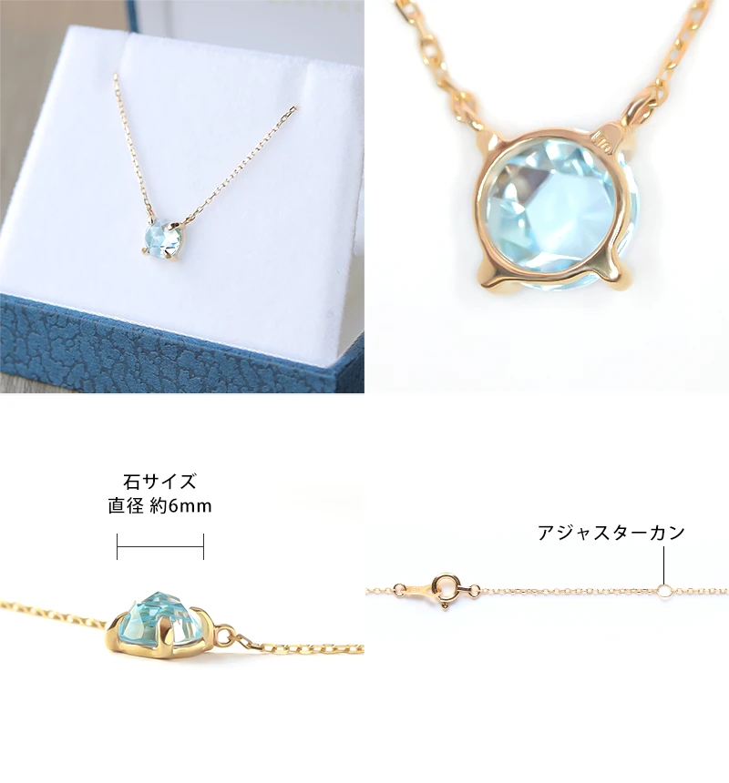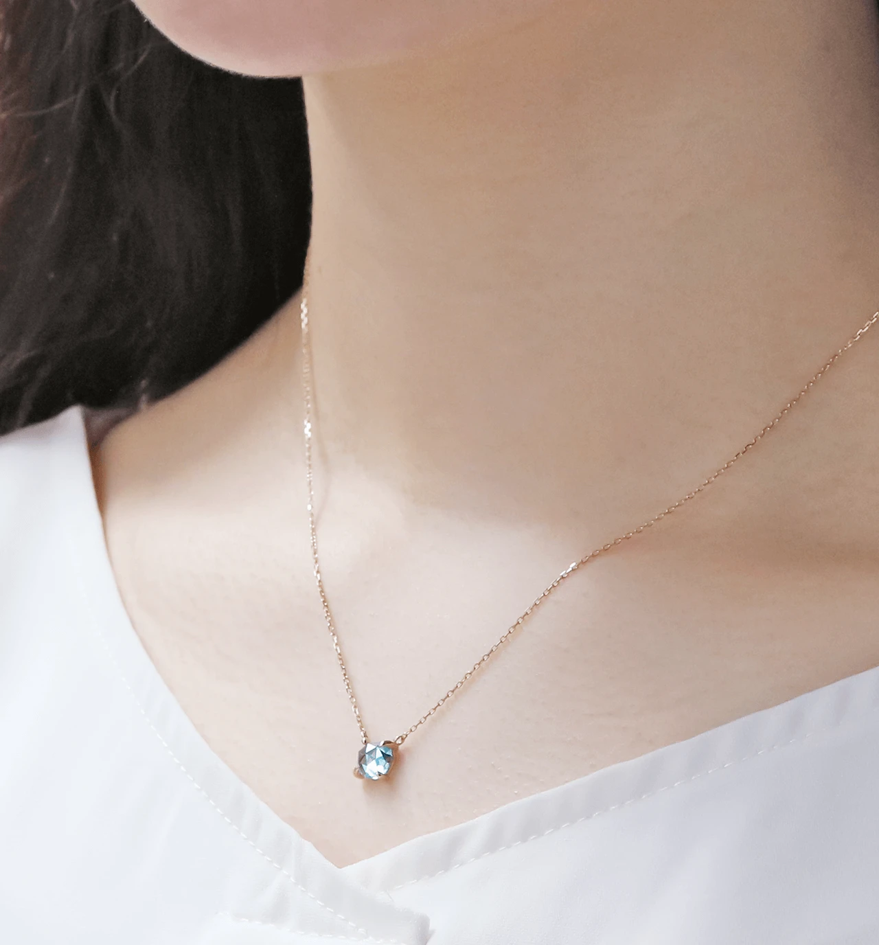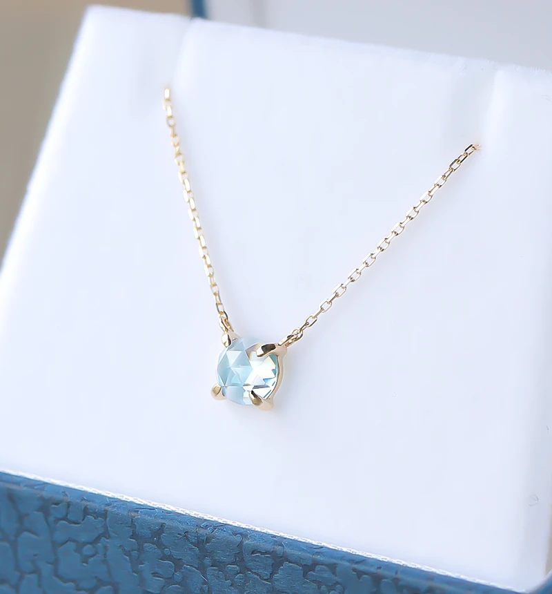 涼やかなブルーの発色と煌きが美しいローズカットのスカイブルートパーズを使用したK10ネックレスです。ローズカットの表面に施された24面のカット面が光を反射し、キラキラと美しく輝きます。スカイブルートパーズは11月の誕生石です。