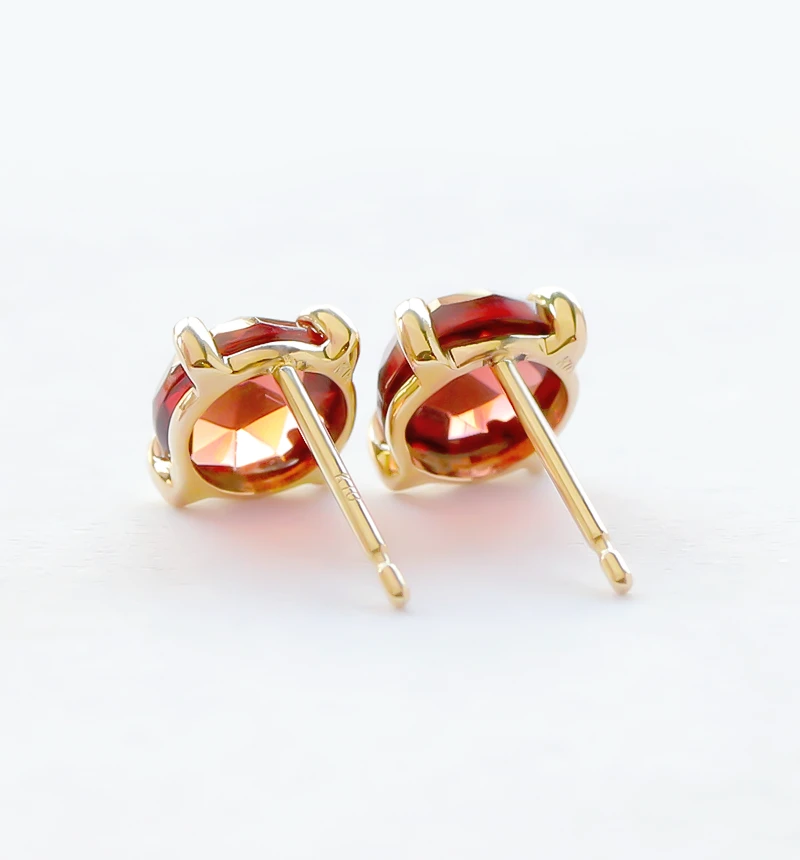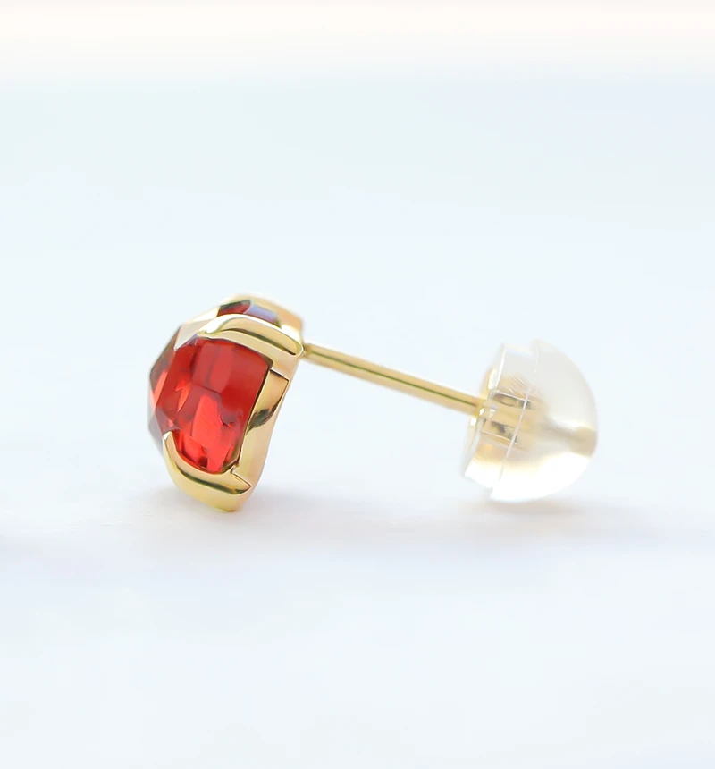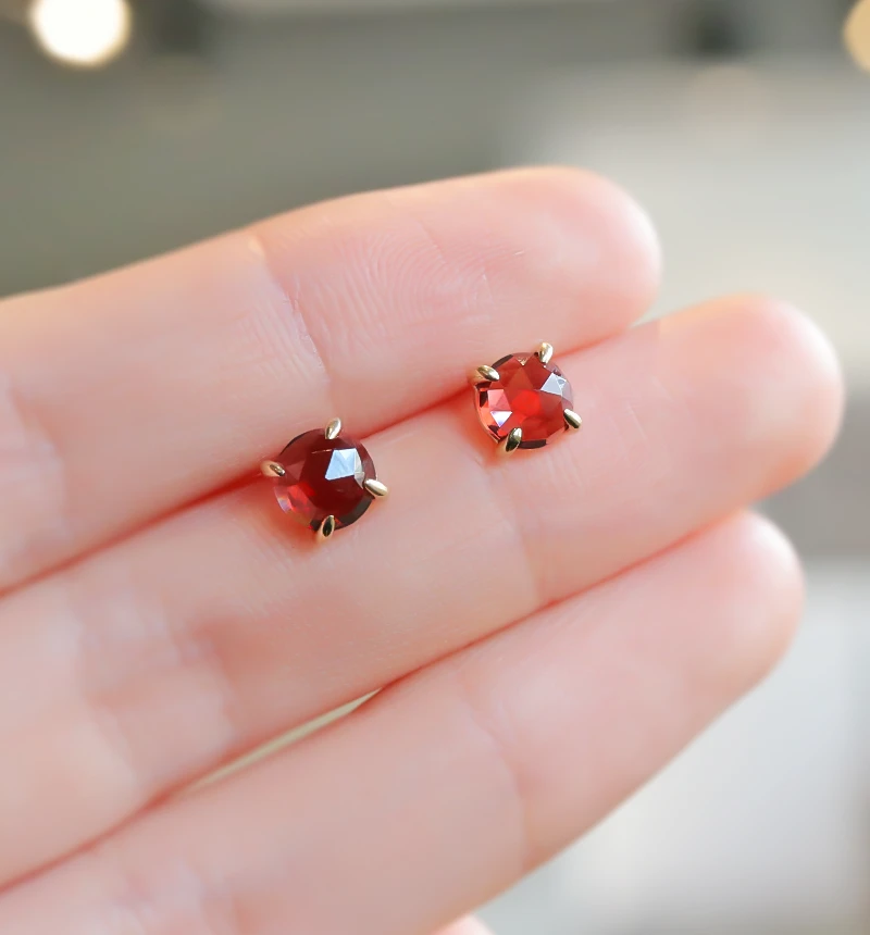 特有のレッドカラーが魅力的なローズカットのガーネットを使用したK10ポストピアスです。ローズカットの表面に施された24面のカット面が光を反射し、キラキラと美しく輝きます。ガーネットは1月の誕生石です。