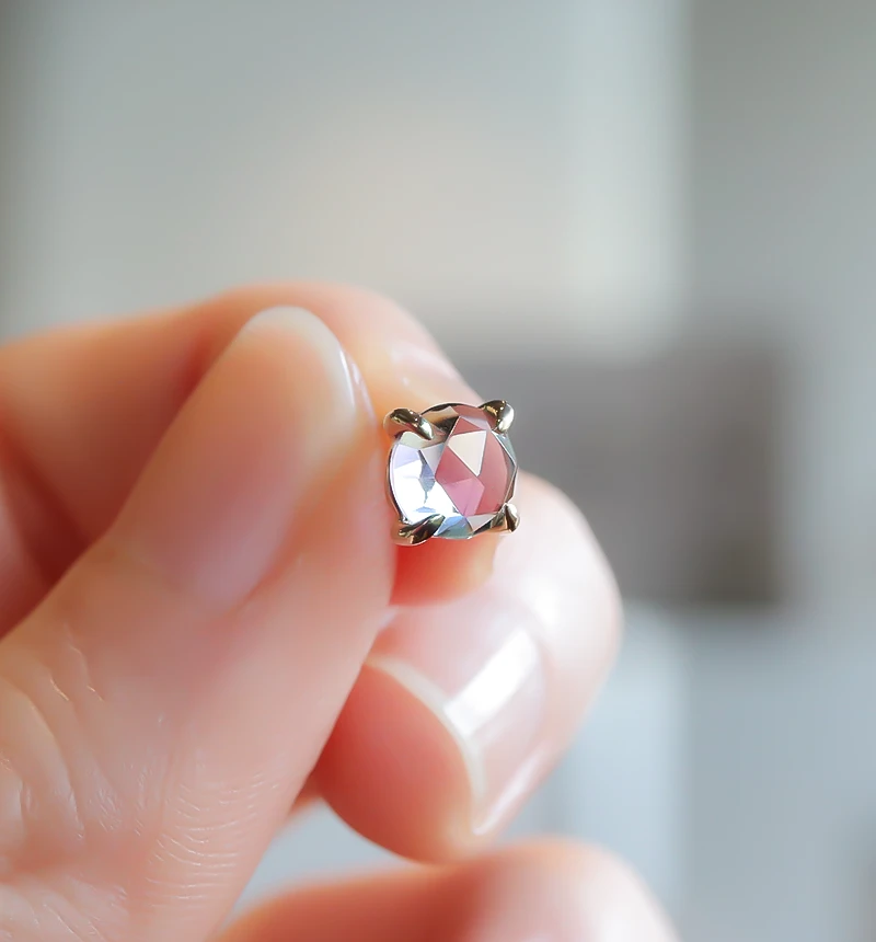 クラシカルな形のローズカットを使用した『VALOA-ヴァロア-』のシリーズ。しっかり石を支える爪は先端に向けて細く研ぎ澄まされていく形に仕上げました。