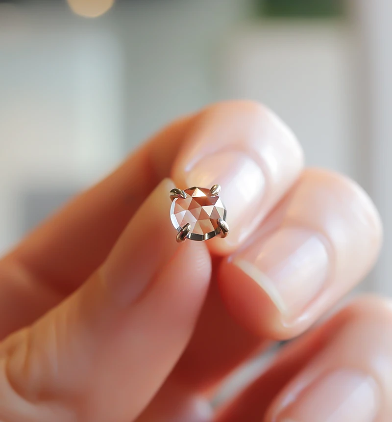 クラシカルな形のローズカットを使用した『VALOA-ヴァロア-』のシリーズ。しっかり石を支える爪は先端に向けて細く研ぎ澄まされていく形に仕上げました。