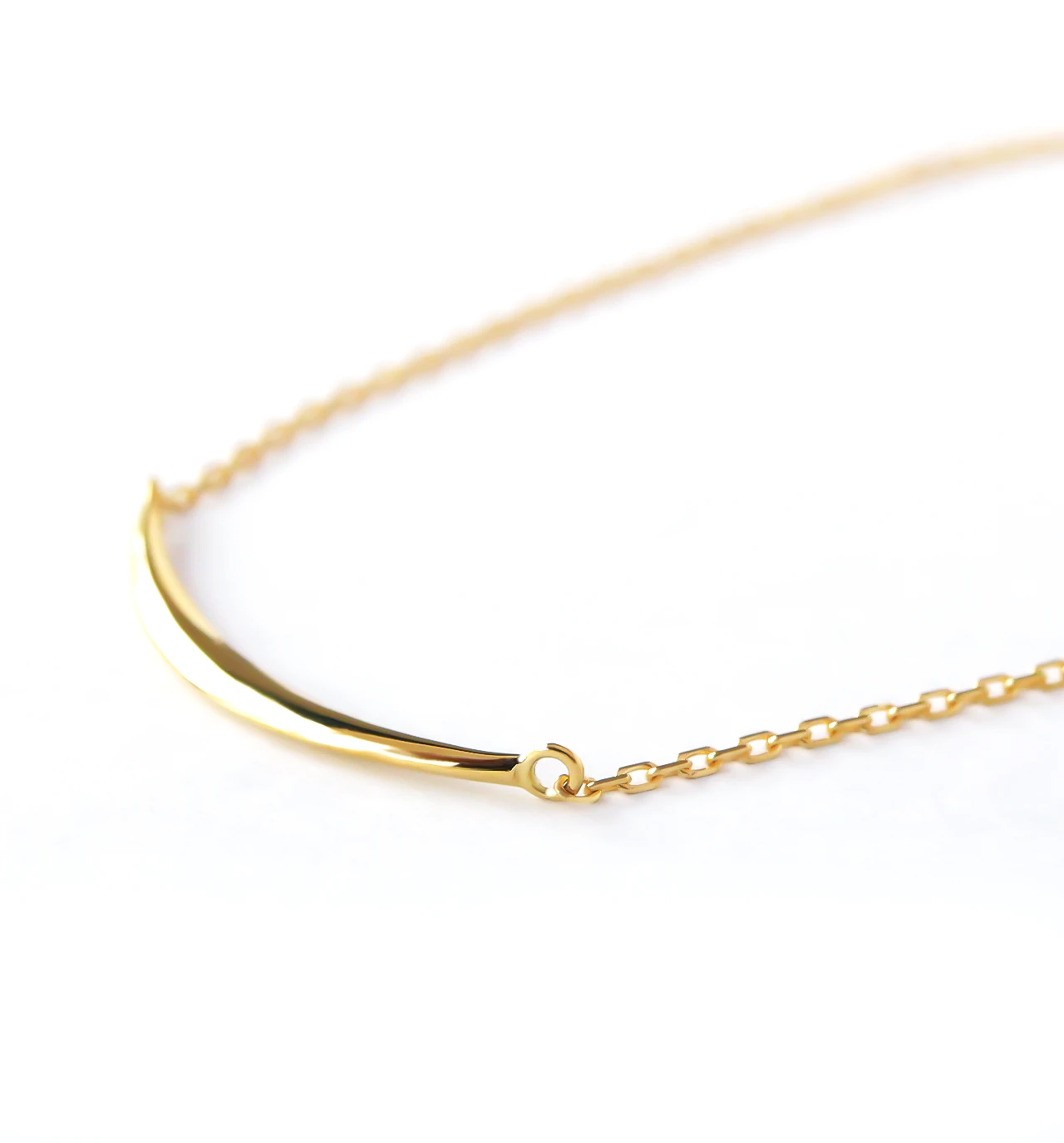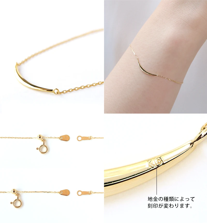 繊細なK10あずきチェーンのセンターにムーンチャームをあしらったブレスレット。シンプルながらに存在感のある手元にしてくれます。
