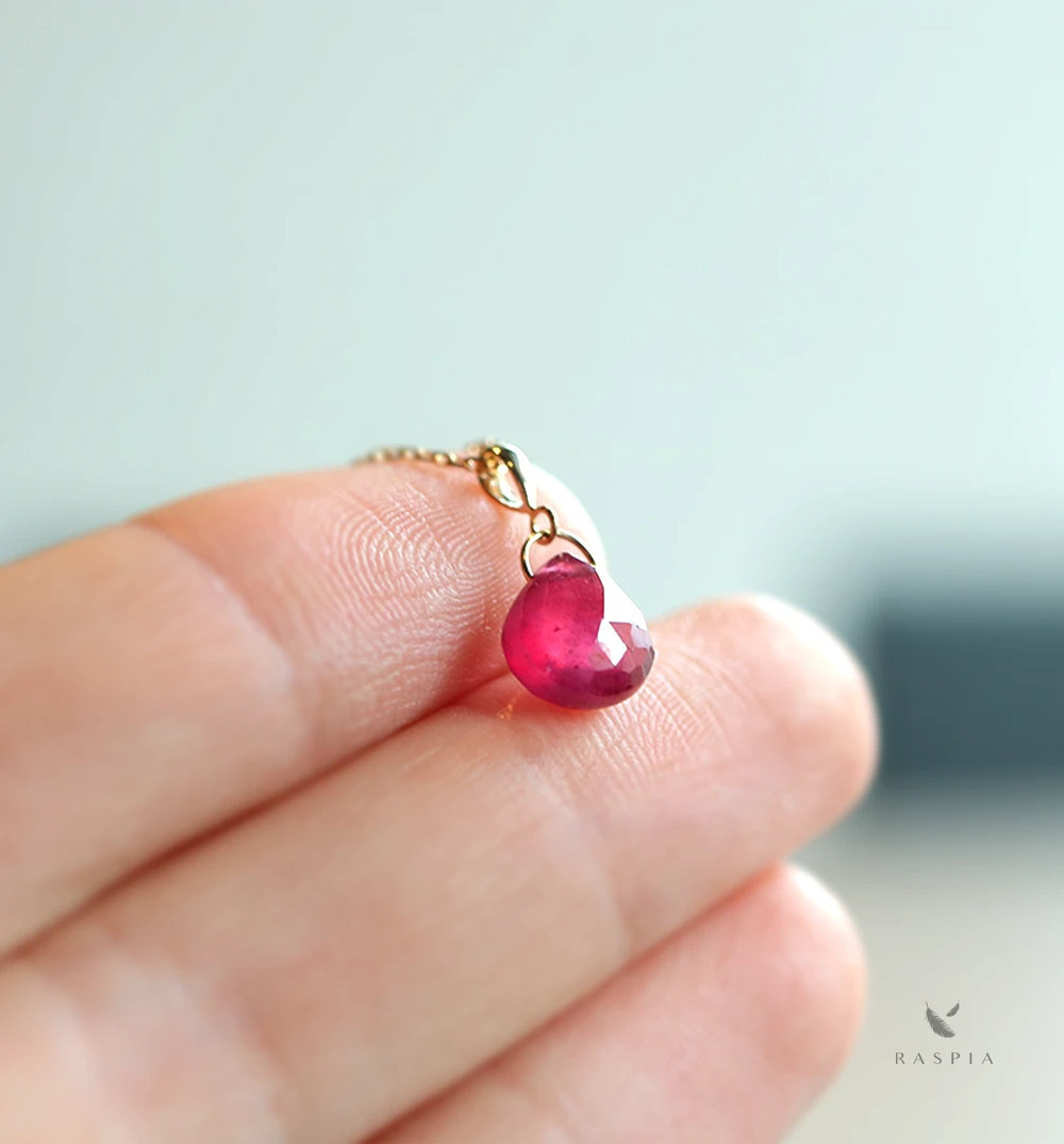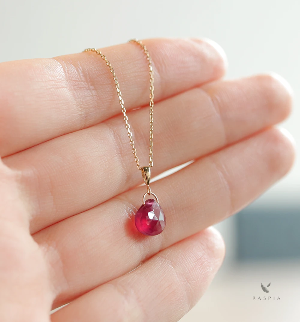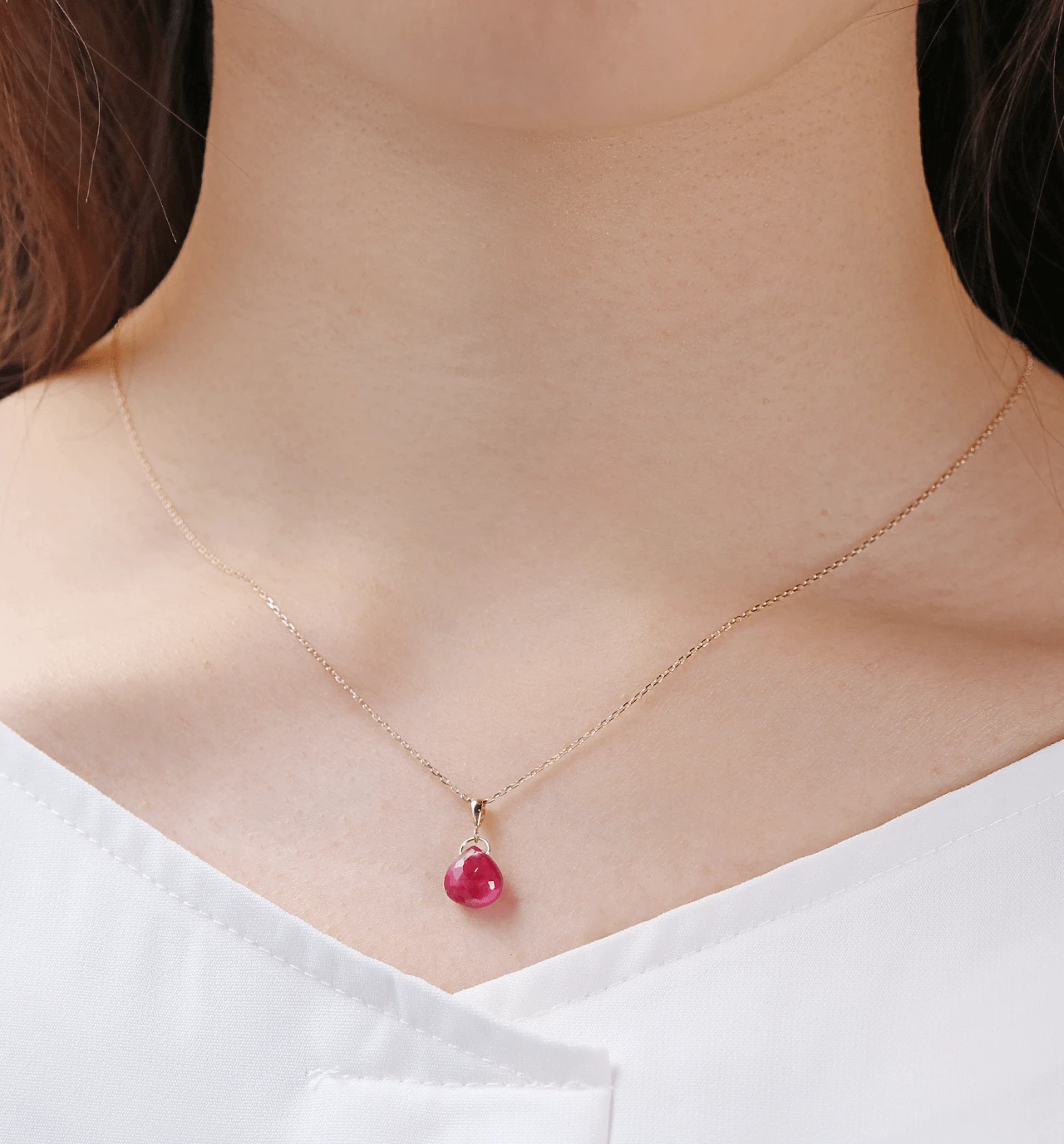 深いピンクレッドが印象的なルビーのネックレスチャームです。