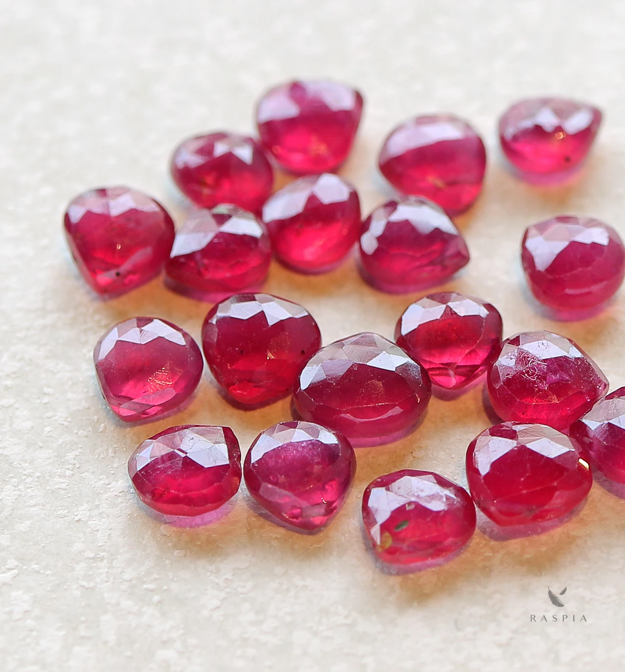 珍しいマロンカットのルビーは可愛らしさの中にどこかアンニュイな雰囲気が漂います。ルビーは7月の誕生石です。