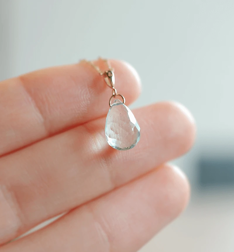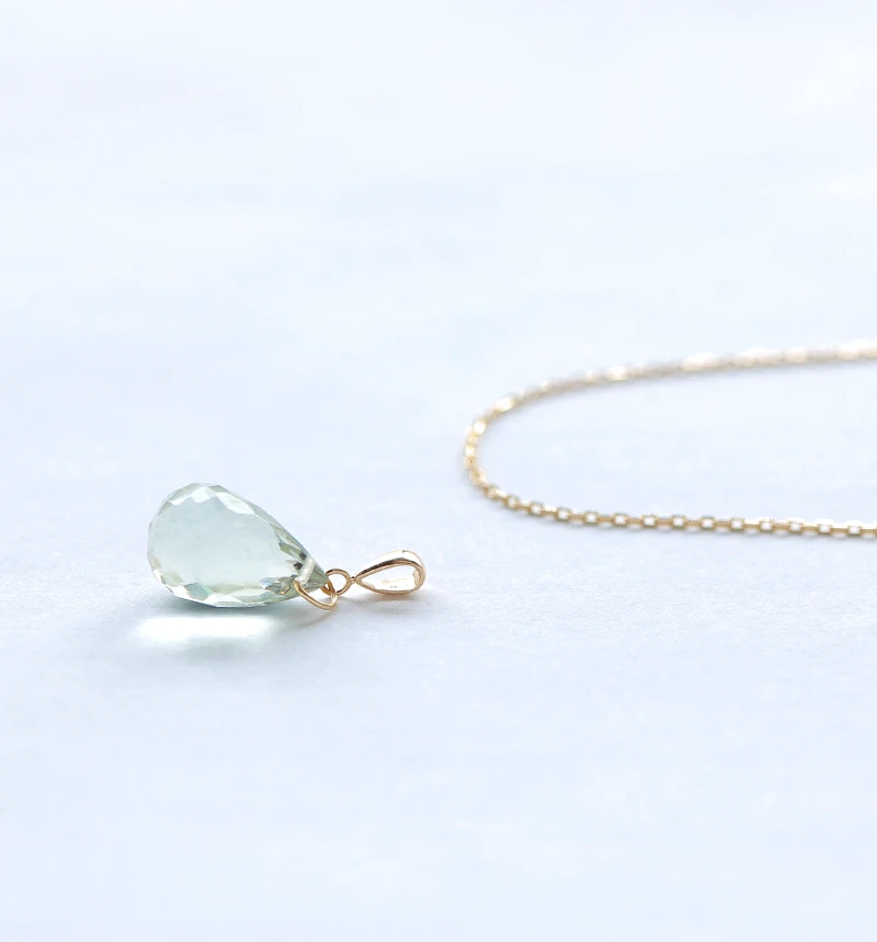 澄んだ湖水のような透明感が印象的なグリーンアメジストを使用したK10のネックレスチャームです。