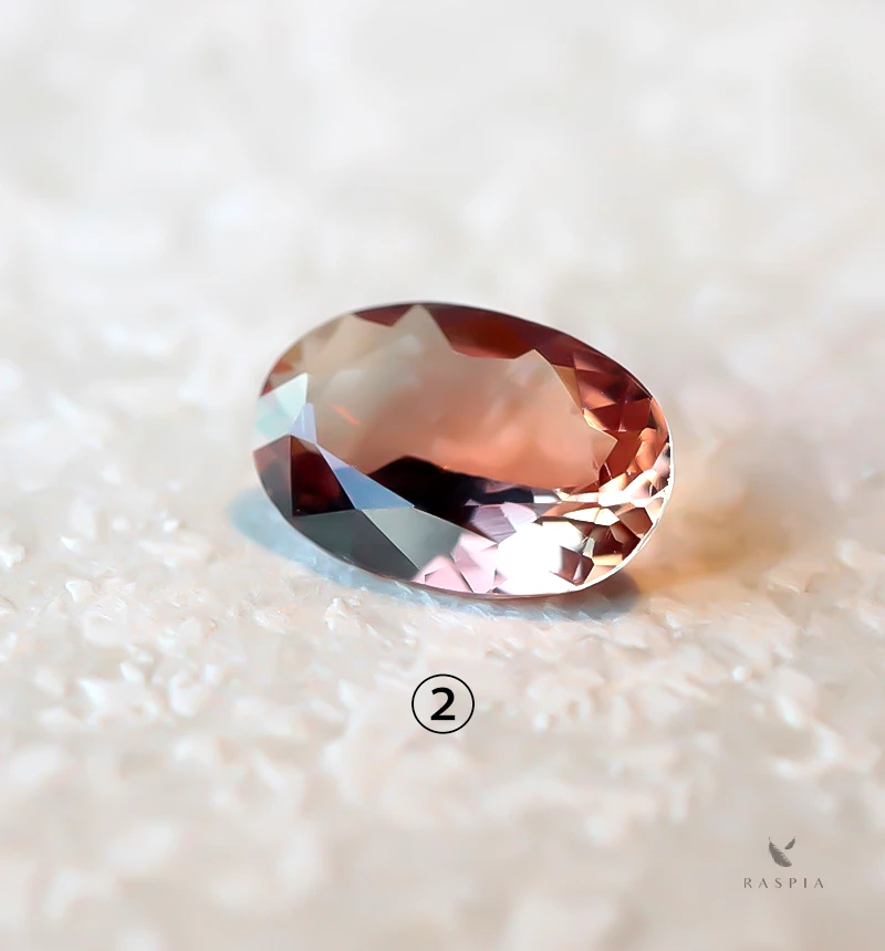 淡くやさしいピンクカラーから、赤やオレンジ、ブラウンがかったアンニュイなカラーまで幅広く存在し、その中でもグリーンカラーや緑と赤のバイカラーは特に希少価値が高い石と言われています。