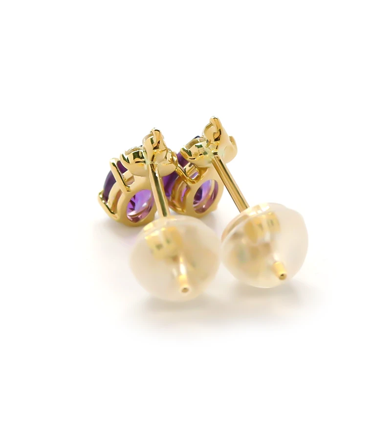 ピアスの金具はすべて18金でお作りしており、鮮やかな金色を長くお楽しみいただけます。石留めの爪はさりげなく繊細で、石の存在感を引き立てます。