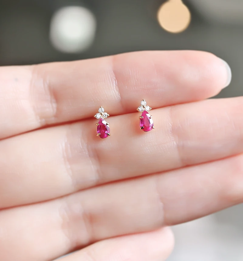 燃え盛る炎のように情熱的に輝くルビーは、その美しさと希少性から「宝石の女王」とも呼ばれています。カット・研磨の質、透明度など申し分ないクオリティで、耳元で光を受けるたびに鮮烈なきらめきを放ちます。