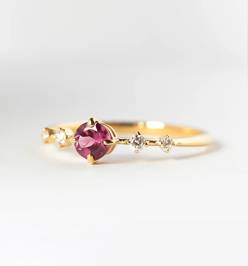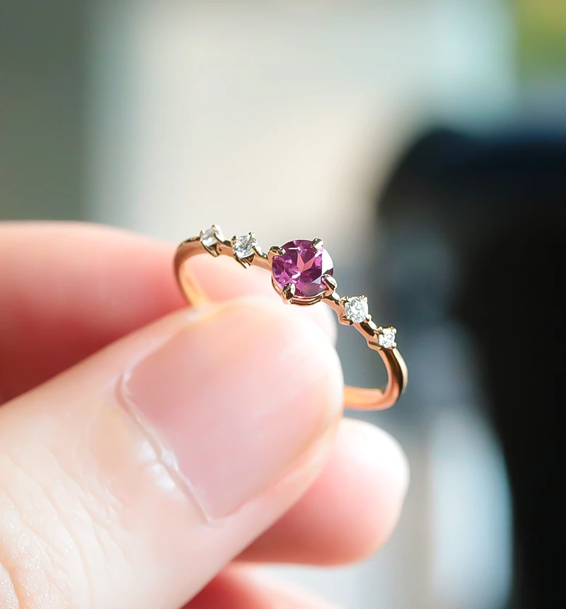 石が主役になる、そして鮮やかなカラーストーンの美しいきらめきが楽しめるリングになるように、細部までこだわり作り上げています。指輪の重ね付けをしたり、Elloシリーズのネックレスと合わせたりと様々なコーディネートでお楽しみください。