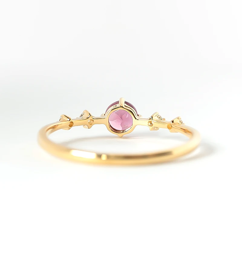 | 石 | 【個数】 ・マラヤガーネット × 1石 ・ダイヤモンド × 4石(SI~VSクラス相当) 【サイズ】 ・マラヤガーネット:直径 約 4mm × 1石 ・ダイヤモンド:直径 約 1.6mm × 2石、直径 約 1.3mm × 2石 【カラット】 ・マラヤガーネット:約 0.32ct × 1石 ・ダイヤモンド:合計0.056ct |