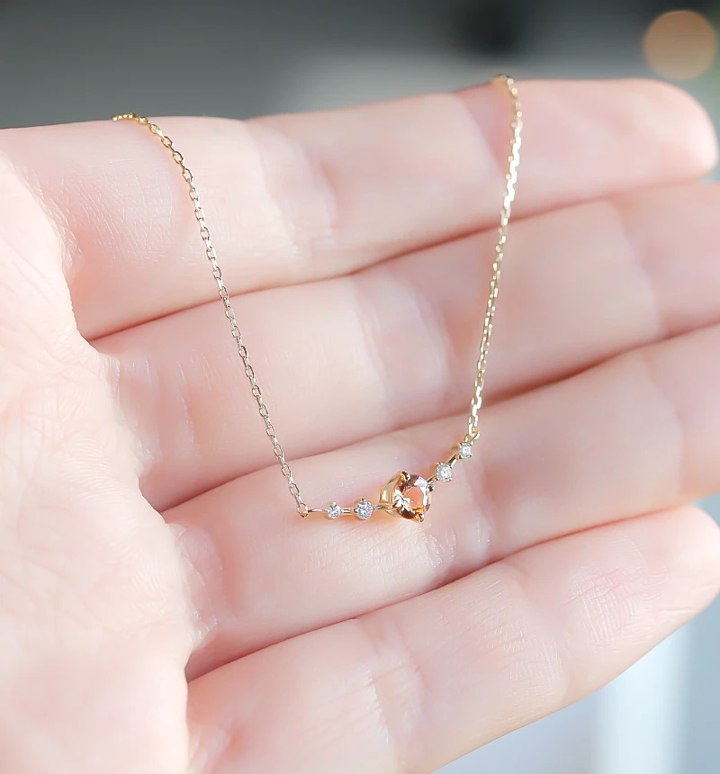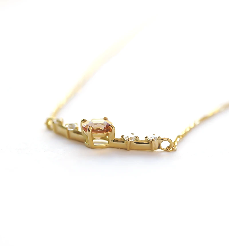 インペリアルトパーズのラウンドカットをメインに、4つのメレダイヤを配したK18ネックレスです。
