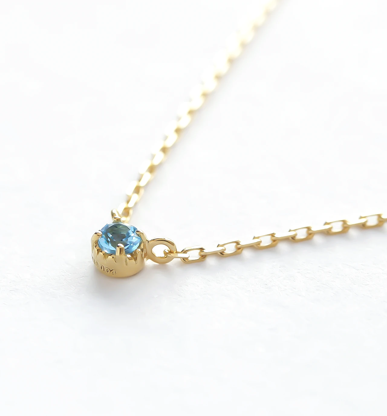 涼やかなブルーの発色と煌きが美しいスイスブルートパーズを1粒使用したK10(10金)のネックレスです。